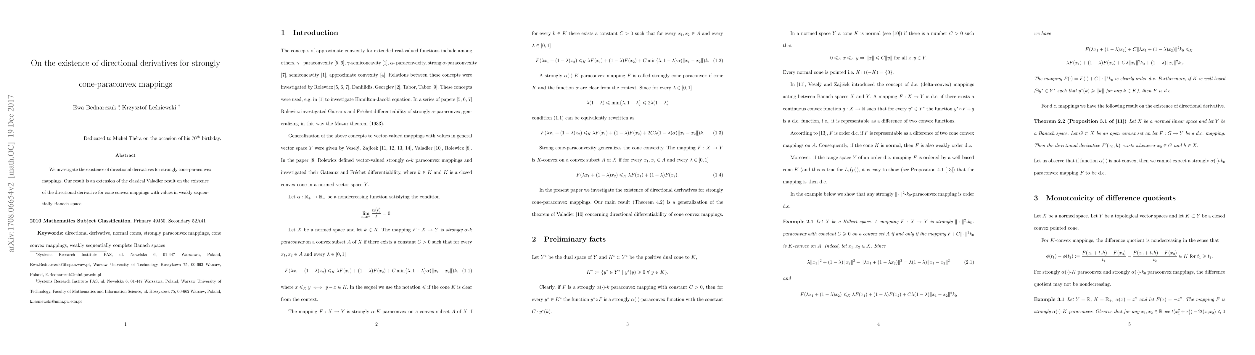 This paper explores the existence of directional derivatives for strongly cone-paraconvex mappings, establishing a result analogous to Valadier's theorem on directional differentiability for cone convex mappings.