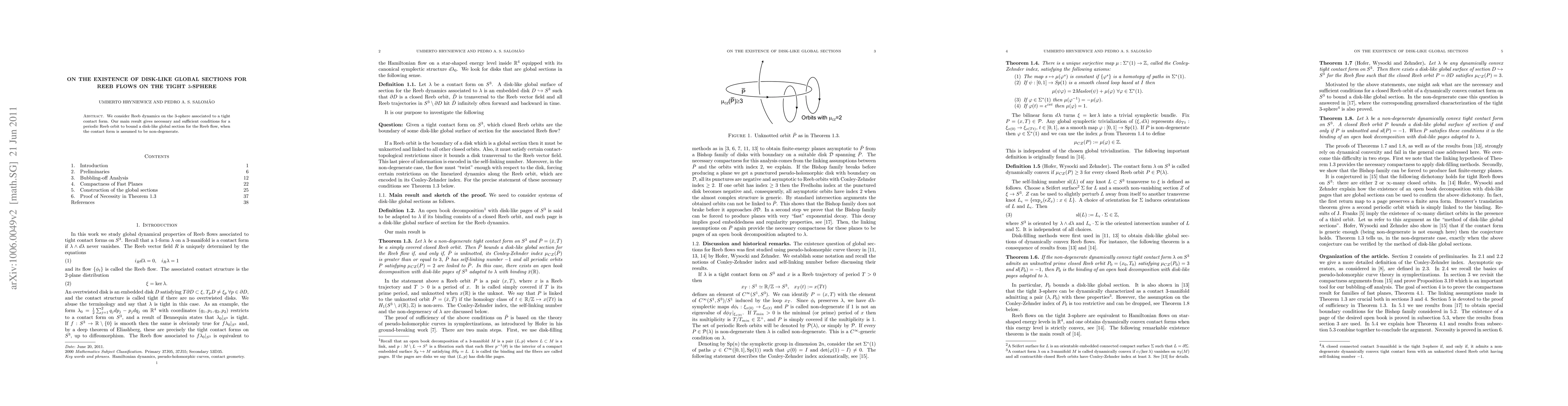 We consider Reeb dynamics on the 3-sphere associated to a tight contact form. Our main result gives necessary and sufficient conditions for a periodic Reeb orbit to bound a disk-like global section for the Reeb flow, when the contact form is assumed to be non-degenerate.