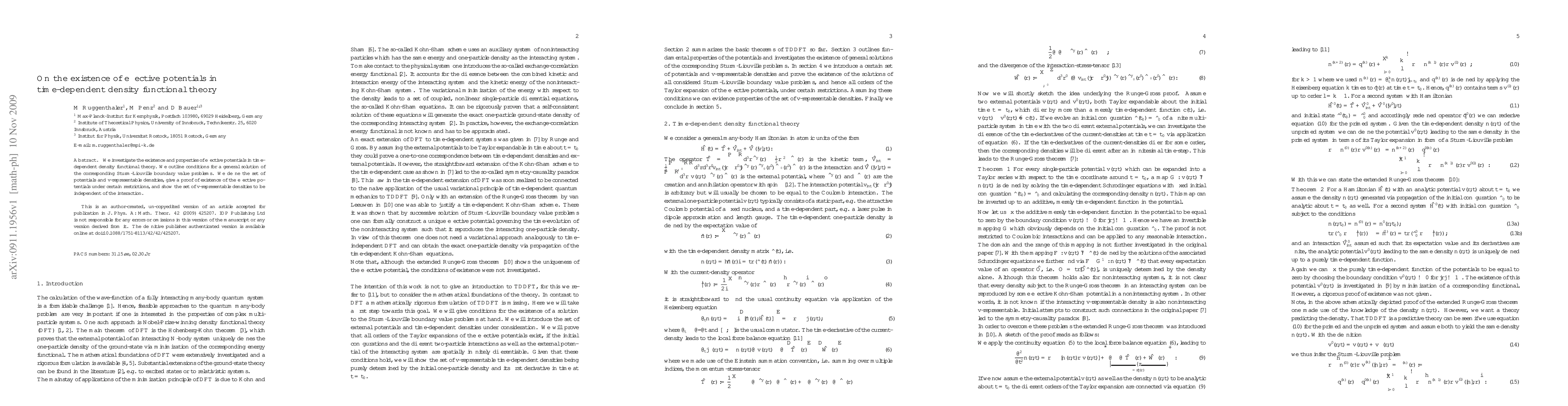 Summary: This paper explores the existence and properties of effective potentials in time-dependent density functional theory and establishes conditions for their general solution. It proves the existence of effective potentials under certain restrictions and shows that v-representable densities are independent of interaction.