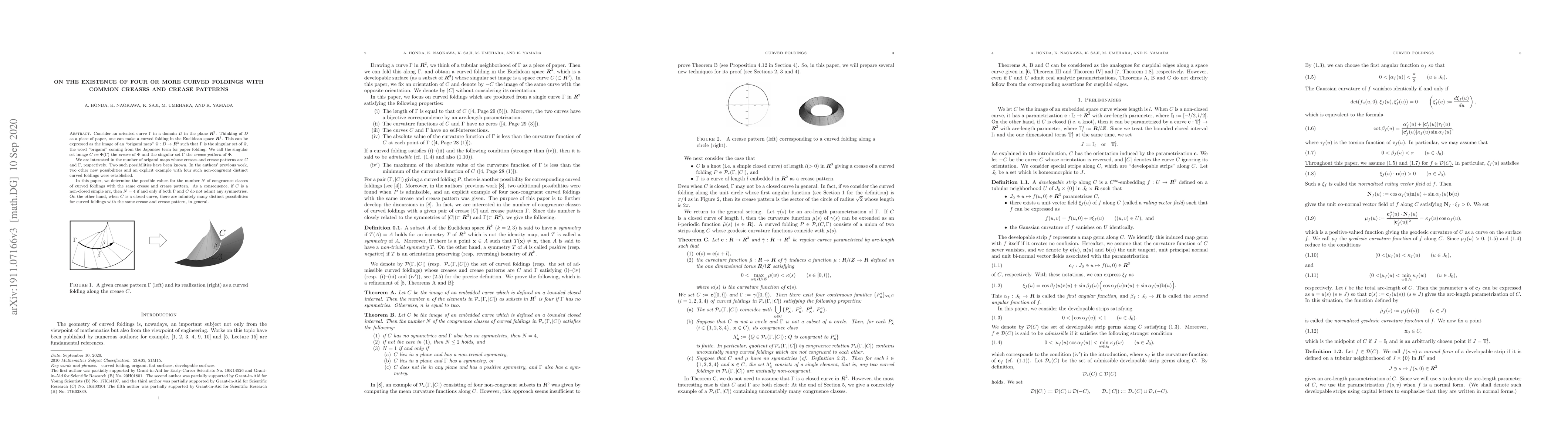 This paper explores the existence of multiple curved foldings with identical creases and crease patterns in origami maps. It concludes that for non-closed simple arcs, exactly four distinct foldings can exist without any symmetries in the crease pattern or crease, while closed curves generally allow infinitely many distinct folding possibilities.