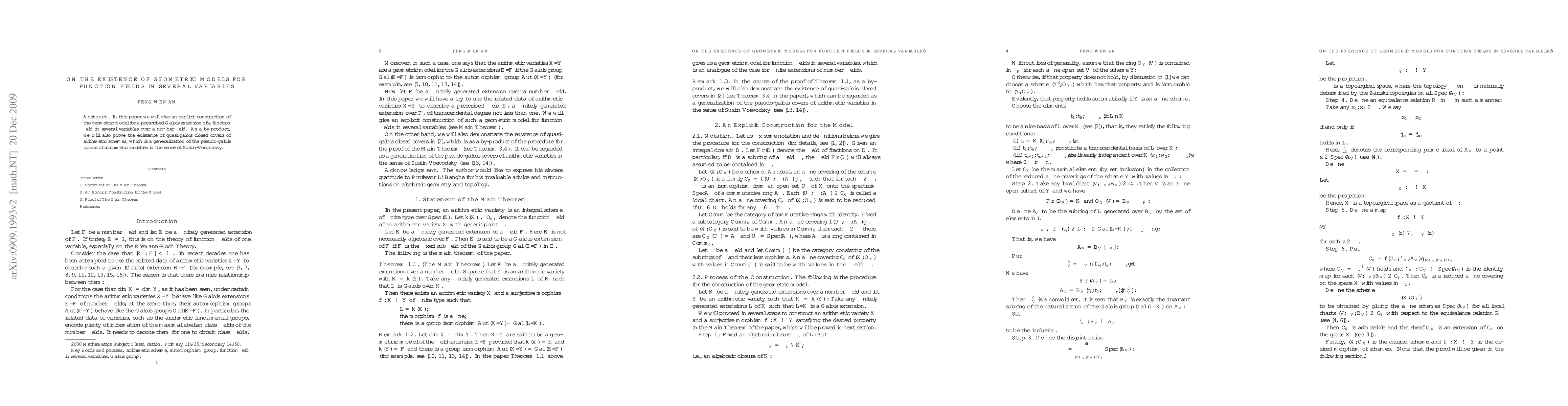 In this paper we will give an explicit construction of the geometric model for a prescribed extension of a function field in several variables over a number field. As a by-product, we will also prove the existence of quasi-galois closed covers of arithmetic schemes (in eprint arXiv:0907.0842).