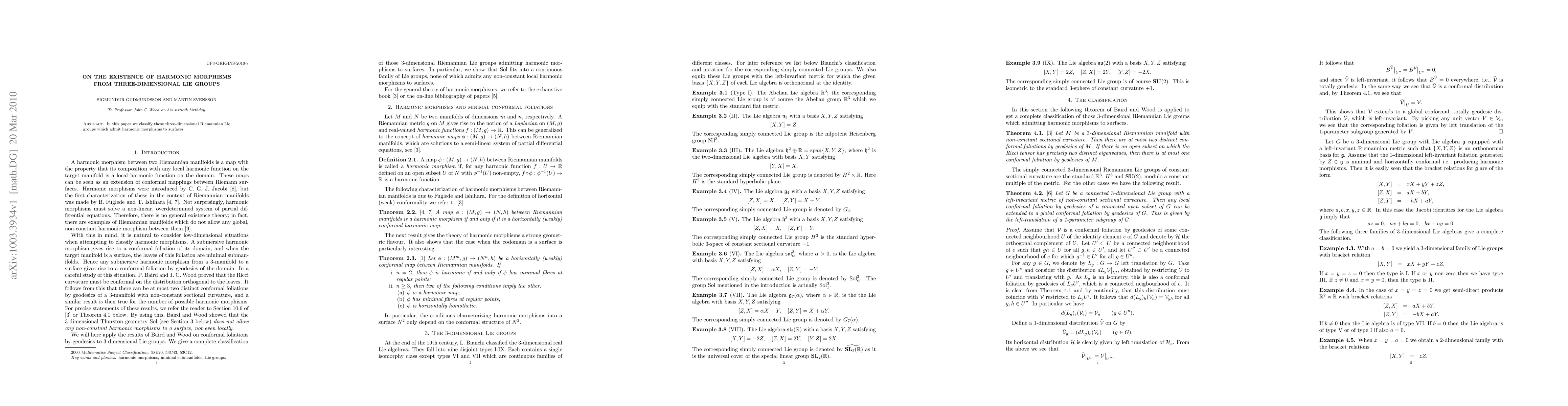 Summary: This paper classifies three-dimensional Riemannian Lie groups that allow harmonic morphisms to surfaces, providing insights into the existence and properties of such mappings.