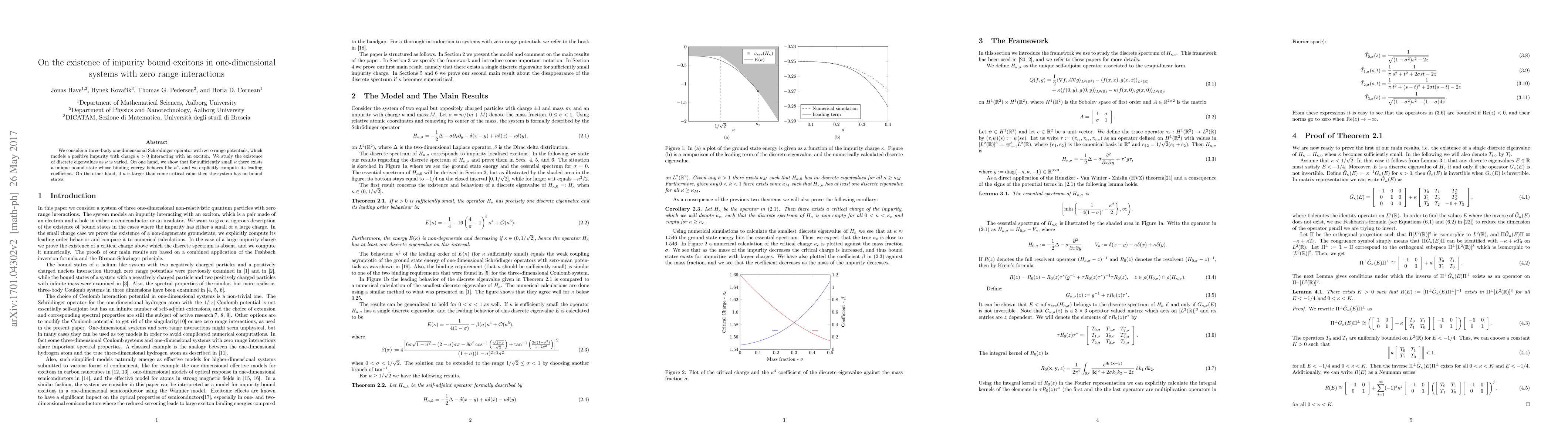 Researchers study the existence of bound excitons in one-dimensional systems with a positive impurity having varying charge strengths; they find that at low charges, a unique bound state exists, while higher charges lead to no bound states.