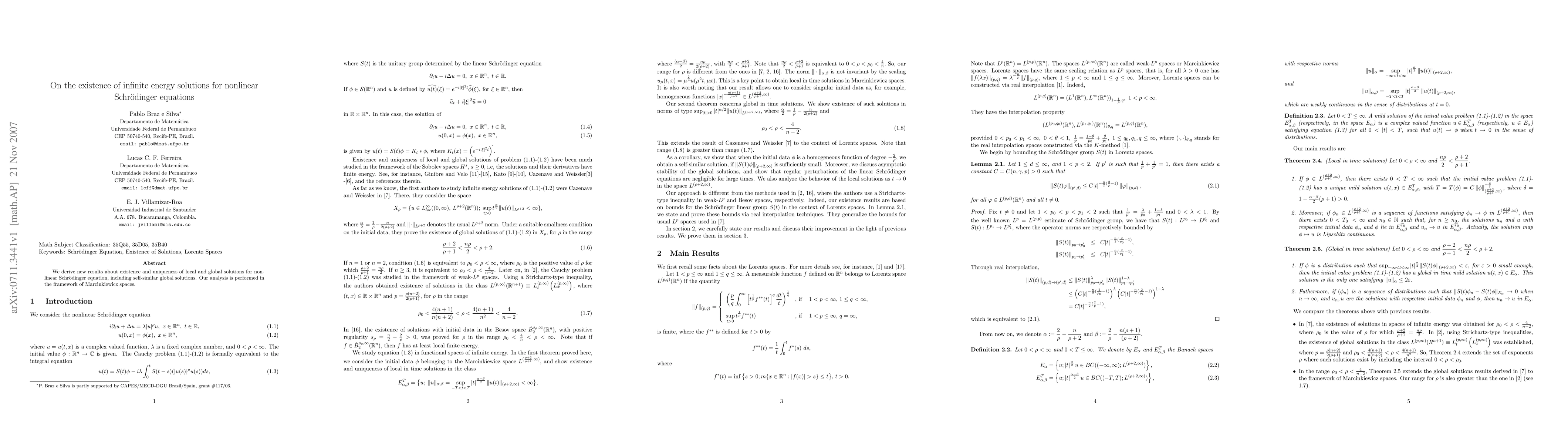 Summary: This paper presents new findings on the existence and uniqueness of both local and global solutions for nonlinear Schrödinger equations, including self-similar global solutions, analyzed within the framework of Marcinkiewicz spaces.