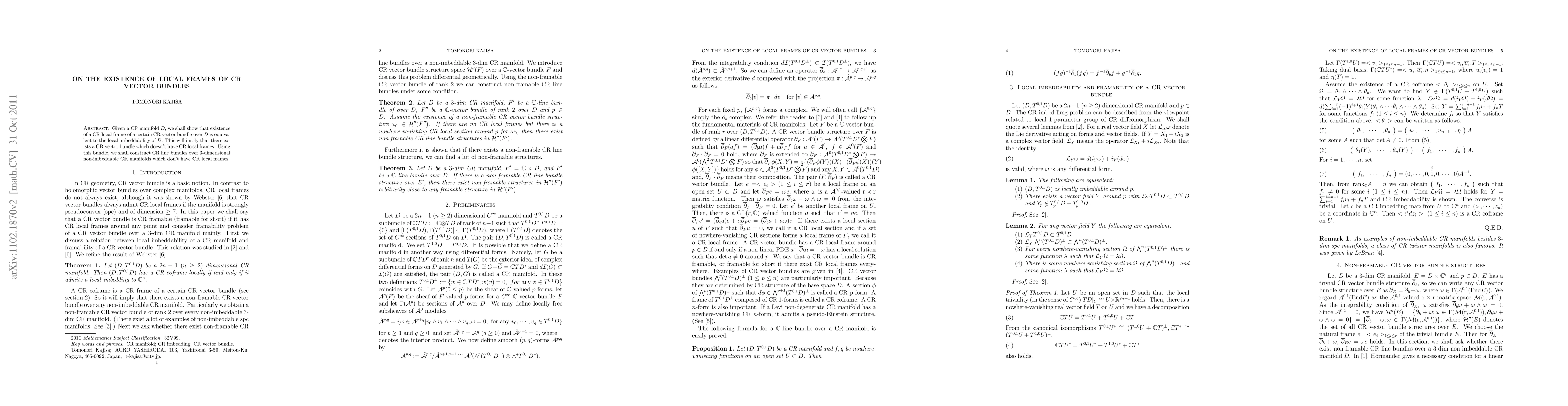 This paper demonstrates that the existence of a CR local frame for a specific CR vector bundle over a CR manifold is equivalent to the local embeddability of the manifold. It concludes by constructing CR line bundles over 3-dimensional non-embeddable CR manifolds that lack CR local frames.