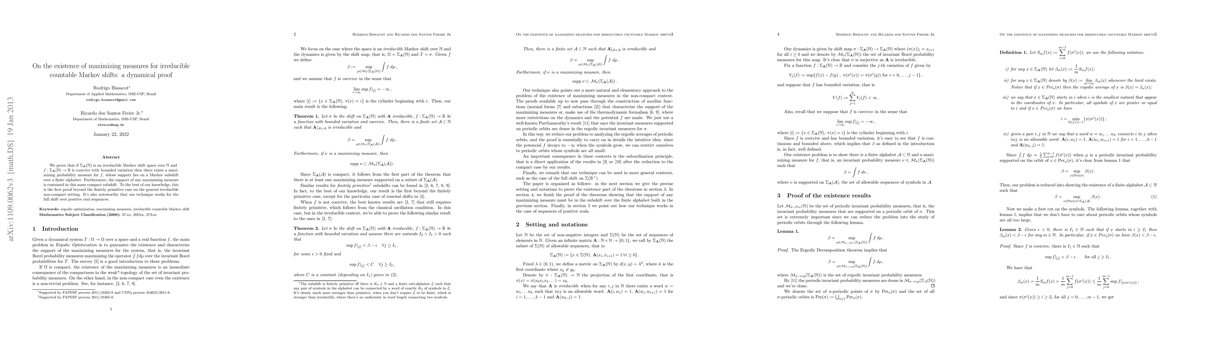 We prove that if $\Sigma_{\mathbf A}(\mathbb N)$ is an irreducible Markov shift space over $\mathbb N$ and $f:\Sigma_{\mathbf A}(\mathbb N) \rightarrow \mathbb R$ is coercive with bounded variation then there exists a maximizing probability measure for f, whose support lies on a Markov subshift over a finite alphabet. Furthermore, the support of any maximizing measure is contained in this same compact subshift. To the best of our knowledge, this is the first proof beyond the finitely primitive case on the general irreducible non-compact setting. It's also noteworthy that our technique works for the full shift over positive real sequences.