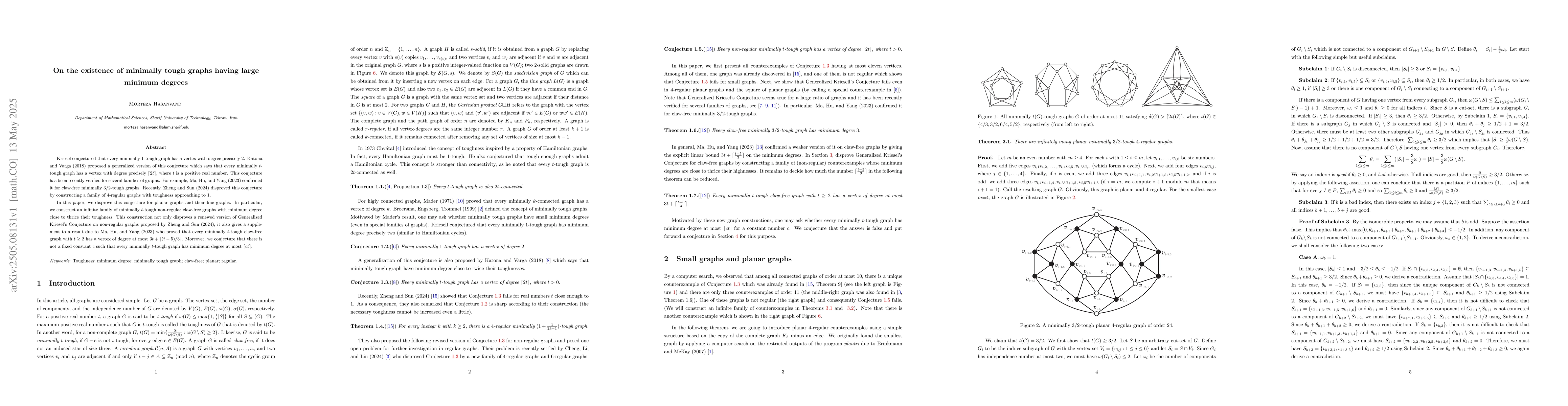 This research disproves a renewed conjecture on non-regular graphs, supplements previous work by Ma, Hu, and Yang (2023), and challenges the existence of a fixed constant c for minimum degree in minimally t-tough graphs.