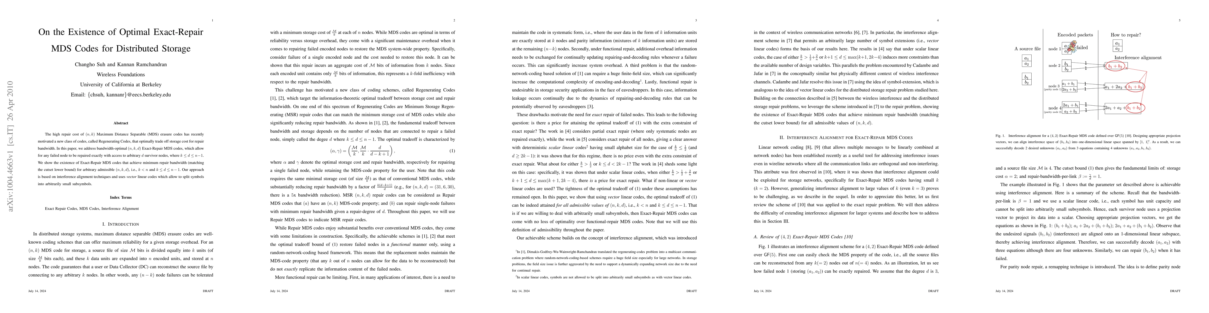 optimally trade off storage cost for repair bandwidth. In this paper, we