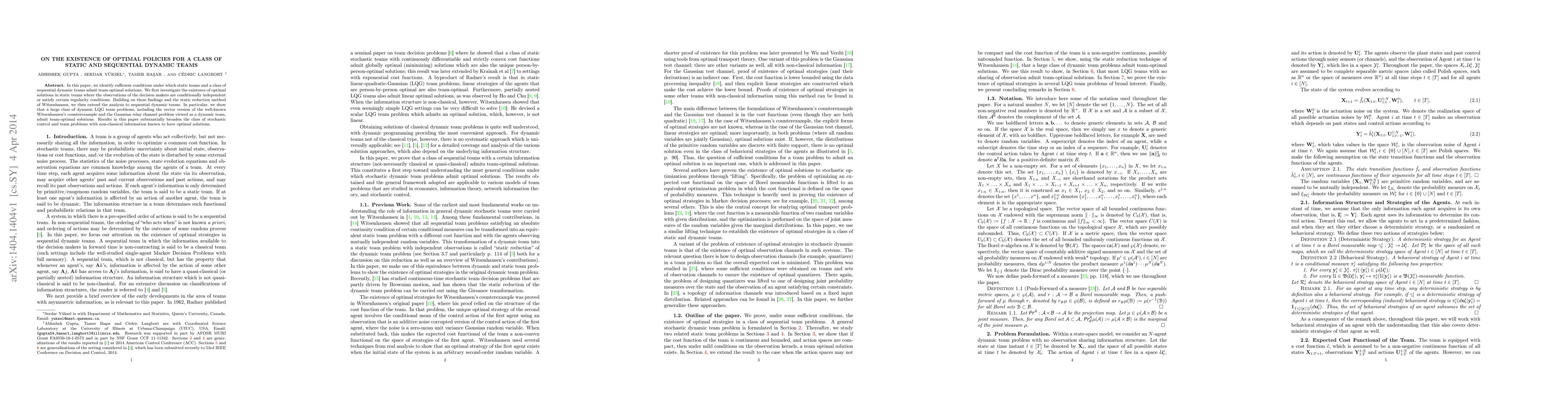 This paper identifies conditions for the existence of optimal policies in static and sequential dynamic teams, demonstrating that many previously problematic dynamic LQG team problems, including the vector version of Witsenhausen's counterexample and the Gaussian relay channel, now have team-optimal solutions. The findings significantly expand the range of stochastic control and team problems with known optimal solutions.