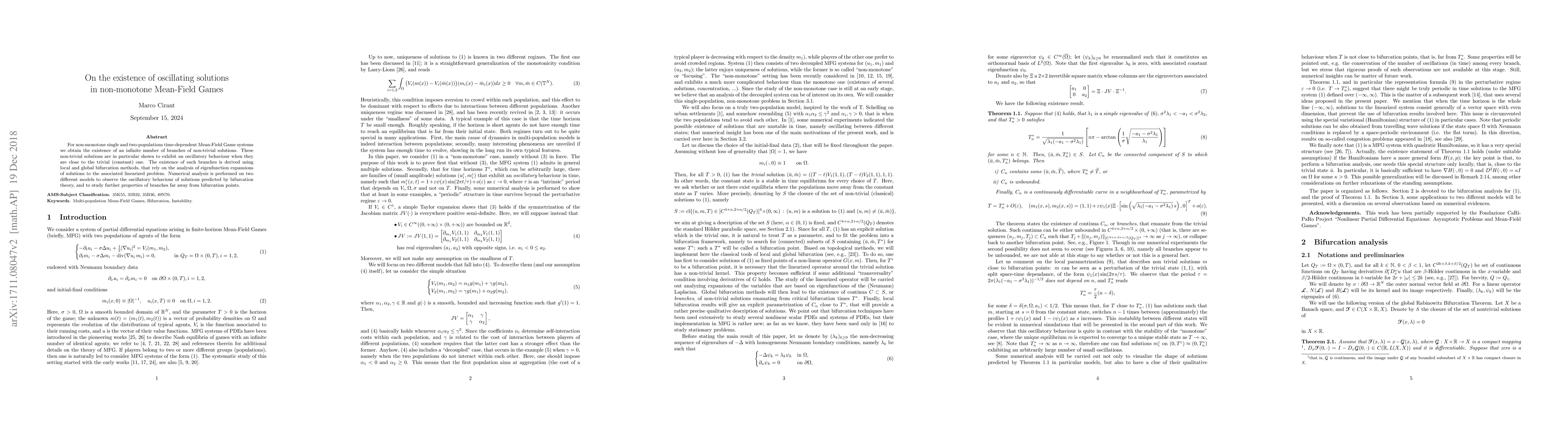 Researchers found that certain solutions to non-monotone Mean-Field Games exhibit oscillatory behavior when near a stable solution, and that an infinite number of these branches exist.