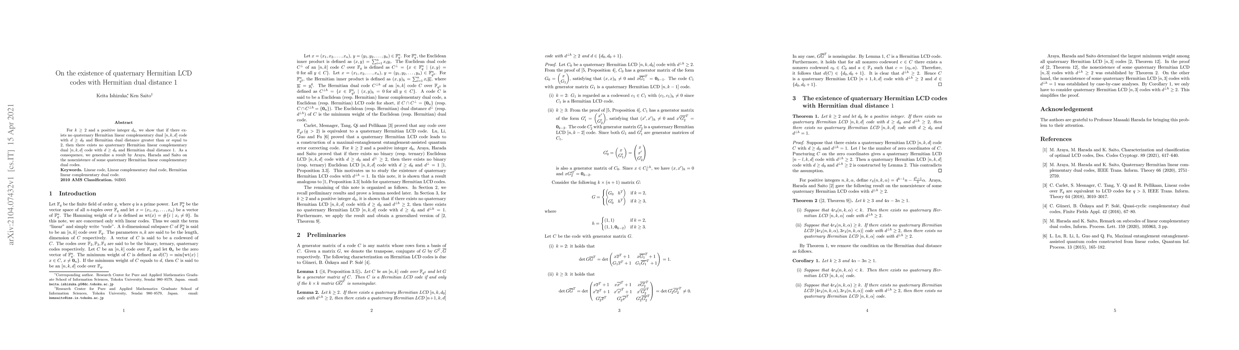 This paper proves that if no quaternary Hermitian linear complementary dual codes exist with a minimum distance $d \ge d_0$ and Hermitian dual distance $\ge 2$, then no such codes exist with Hermitian dual distance $1$. This extends a prior result on the nonexistence of certain quaternary Hermitian linear complementary dual codes.