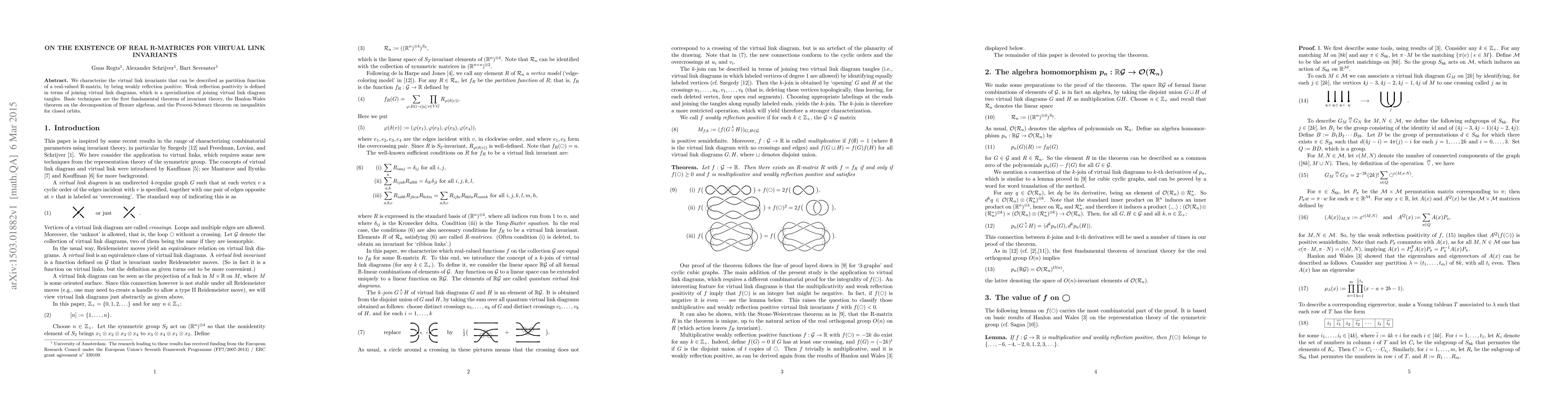 This paper identifies virtual link invariants that correspond to real R-matrices, showing they must be weakly reflection positive. It employs invariant theory, Brauer algebra decomposition, and orbit inequality theorems to characterize these invariants.