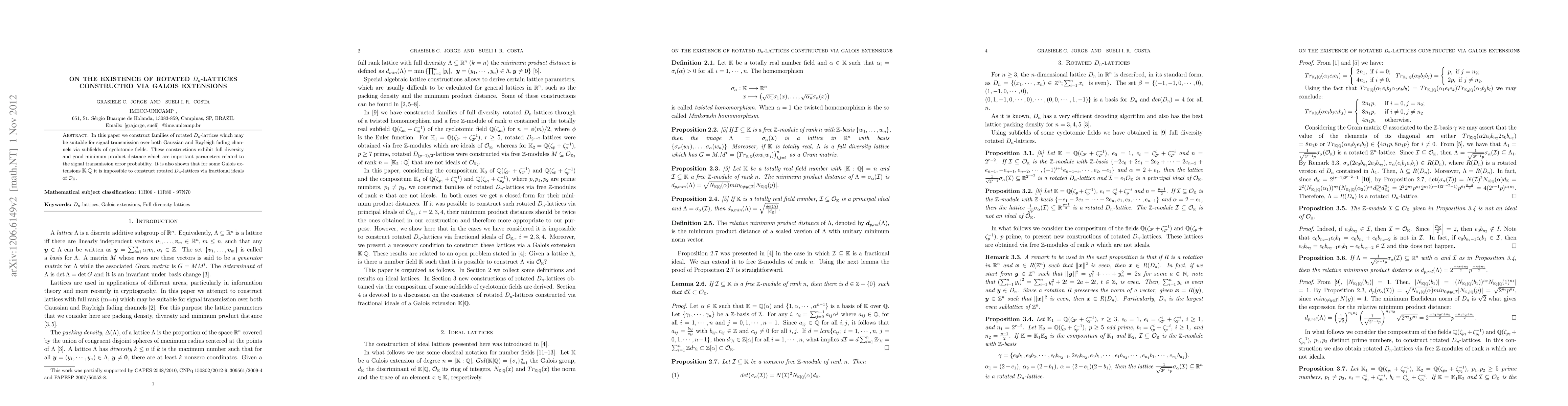 In this paper we construct families of rotated $D_n$-lattices which may be suitable for signal transmission over both Gaussian and Rayleigh fading channels via subfields of cyclotomic fields. These constructions exhibit full diversity and good minimum product distance which are important parameters related to the signal transmission error probability. It is also shown that for some Galois extensions $\matK|\matQ$ it is impossible to construct rotated $D_n$-lattices via fractional ideals of $\mathcal O_{\mattK}$.