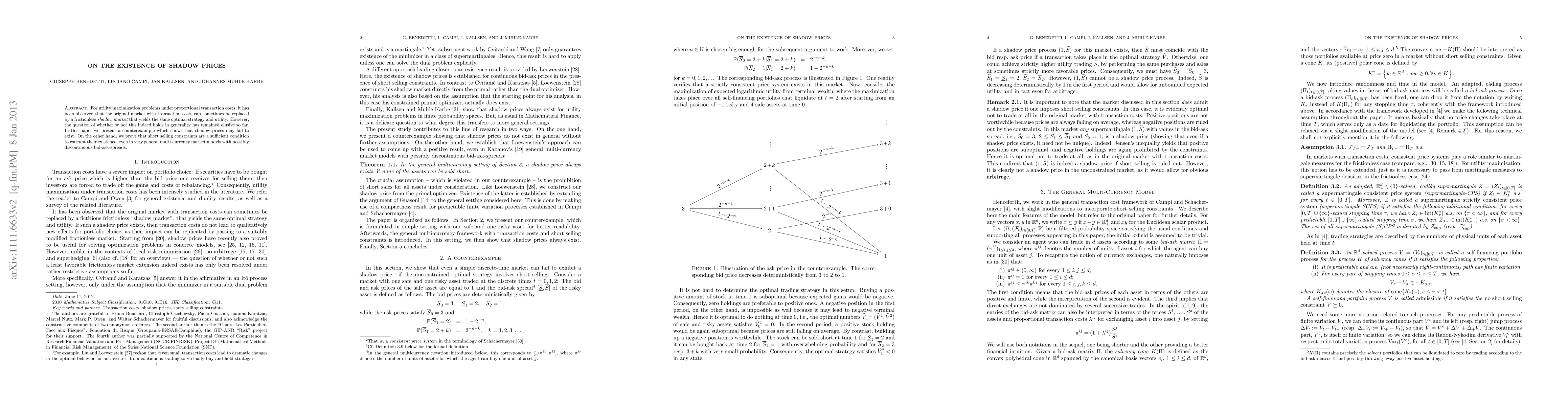 For utility maximization problems under proportional transaction costs, it has been observed that the original market with transaction costs can sometimes be replaced by a frictionless "shadow market" that yields the same optimal strategy and utility. However, the question of whether or not this indeed holds in generality has remained elusive so far. In this paper we present a counterexample which shows that shadow prices may fail to exist. On the other hand, we prove that short selling constraints are a sufficient condition to warrant their existence, even in very general multi-currency market models with possibly discontinuous bid-ask-spreads.