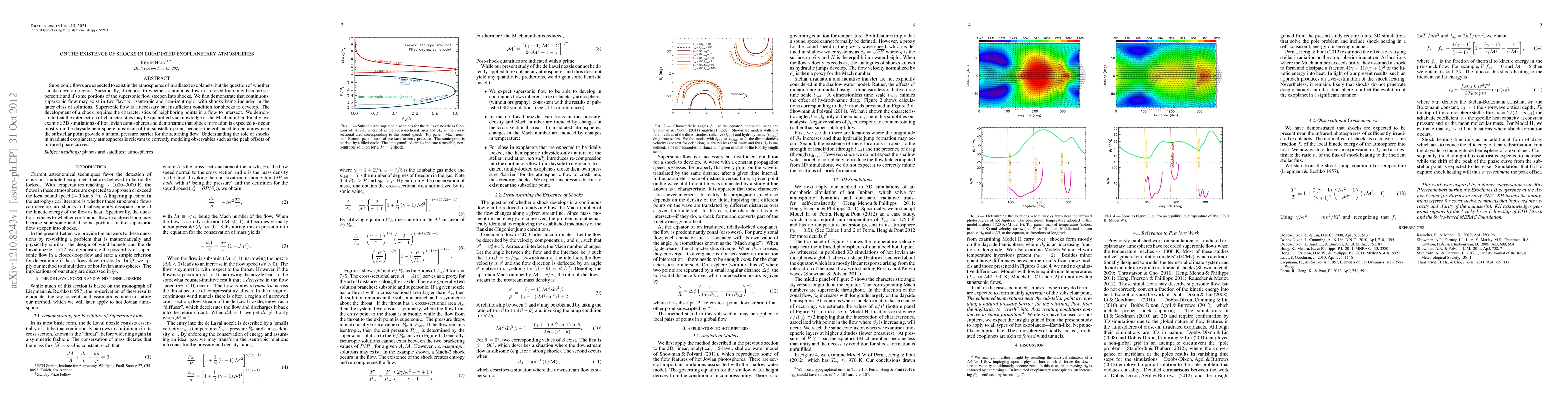 Supersonic flows are expected to exist in the atmospheres of irradiated exoplanets, but the question of whether shocks develop lingers. Specifically, it reduces to whether continuous flow in a closed loop may become supersonic and if some portions of the supersonic flow steepen into shocks. We first demonstrate that continuous, supersonic flow may exist in two flavors: isentropic and non-isentropic, with shocks being included in the latter class of solutions. Supersonic flow is a necessary but insufficient condition for shocks to develop. The development of a shock requires the characteristics of neighboring points in a flow to intersect. We demonstrate that the intersection of characteristics may be quantified via knowledge of the Mach number. Finally, we examine 3D simulations of hot Jovian atmospheres and demonstrate that shock formation is expected to occur mostly on the dayside hemisphere, upstream of the substellar point, because the enhanced temperatures near the substellar point provide a natural pressure barrier for the returning flow. Understanding the role of shocks in irradiated exoplanetary atmospheres is relevant to correctly modeling observables such as the peak offsets of infrared phase curves.