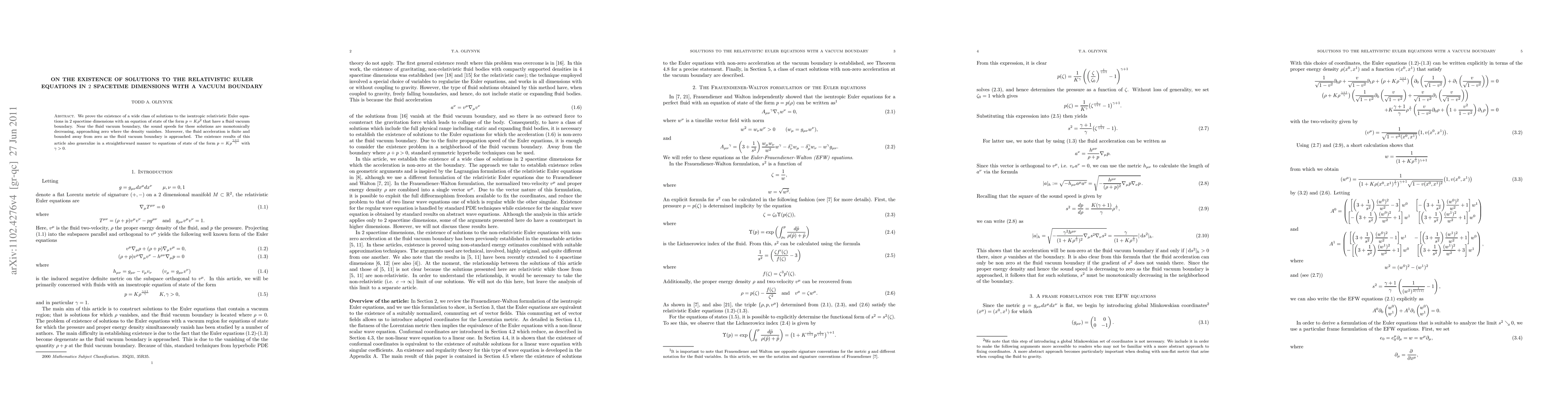 This paper proves the existence of solutions to the relativistic Euler equations in 2D with a vacuum boundary, featuring an equation of state $p=K\rho^2$. The solutions exhibit a monotonically decreasing sound speed near the boundary and finite, non-zero fluid acceleration. The results extend to more general equations of state.