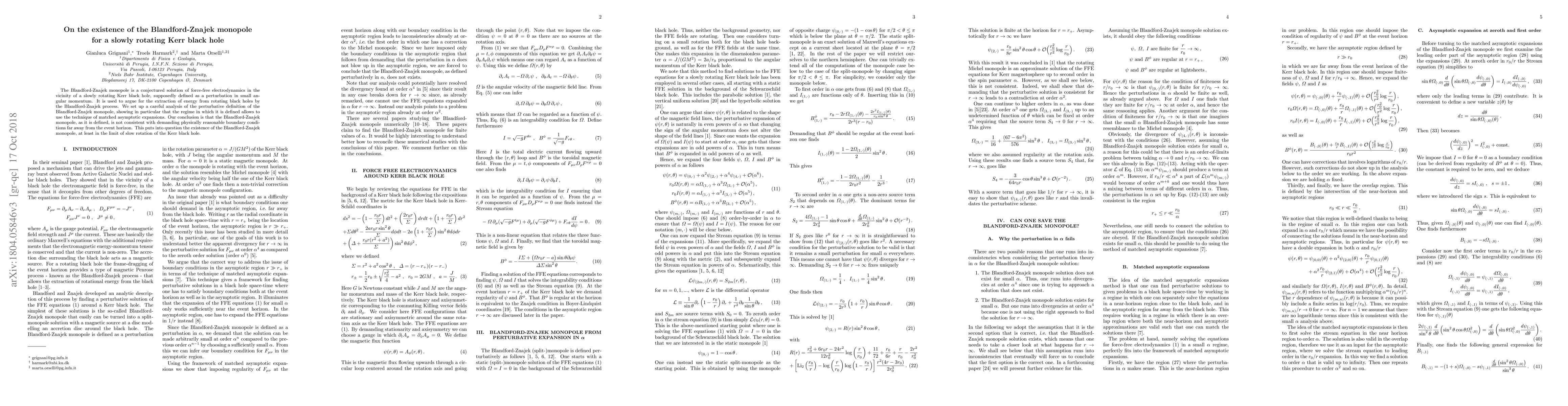 This paper investigates the existence of the Blandford-Znajek monopole near a slowly rotating Kerr black hole, concluding that the monopole's definition is inconsistent with physically reasonable boundary conditions, thus questioning its existence in this regime.