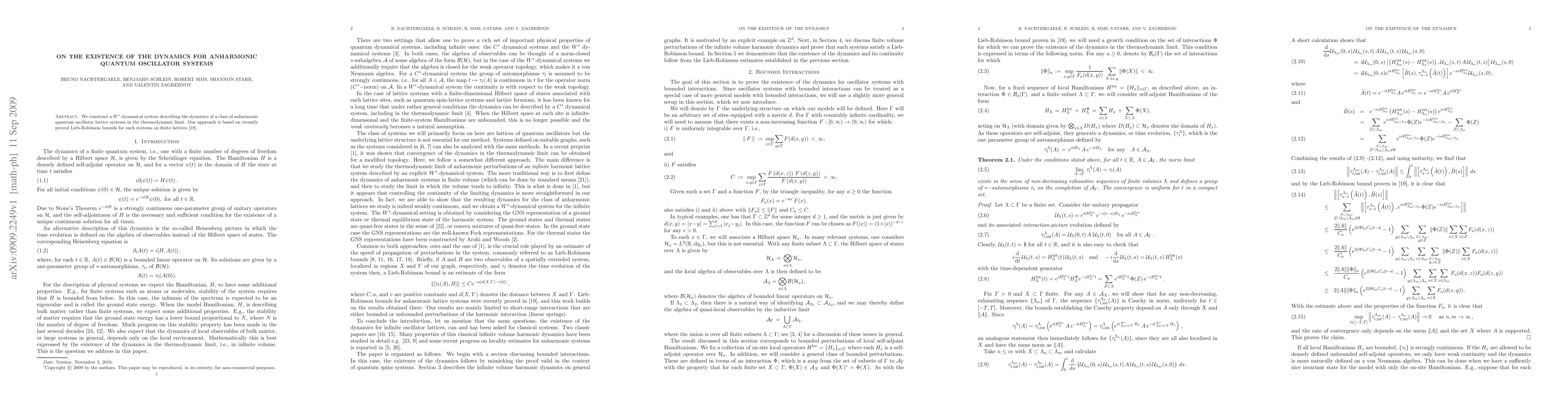 Summary: This paper constructs a W*-dynamical system to describe the thermodynamic limit dynamics of anharmonic quantum oscillator lattice systems. The approach leverages recently established Lieb-Robinson bounds for finite lattices to ensure the validity of the constructed dynamics.