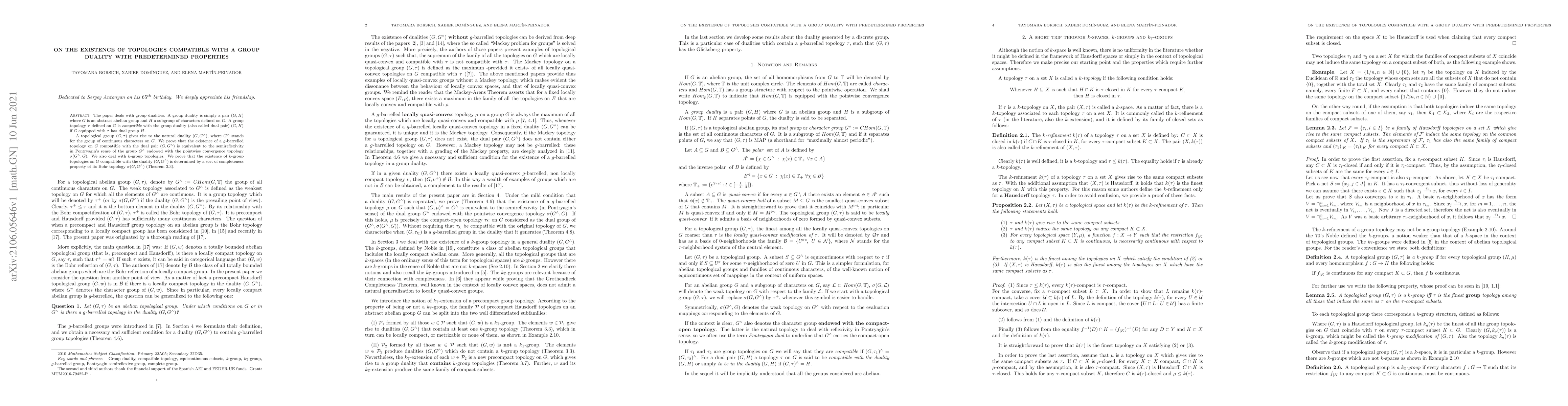 The paper deals with group dualities. A group duality is simply a pair $(G, H)$ where $G$ is an abstract abelian group and $H$ a subgroup of characters defined on $G$. A group topology $\tau$ defined on $G$ is {\it compatible} with the group duality (also called dual pair) $(G, H)$ if $G$ equipped with $\tau$ has dual group $H$. A topological group $(G, \tau)$ gives rise to the natural duality $(G, G^\wedge)$, where $G^\wedge$ stands for the group of continuous characters on $G$. We prove that the existence of a $g$-barrelled topology on $G$ compatible with the dual pair $(G, G^\wedge)$ is equivalent to the semireflexivity in Pontryagin's sense of the group $G^\wedge$ endowed with the pointwise convergence topology $\sigma(G^\wedge, G)$. We also deal with $k$-group topologies. We prove that the existence of $k$-group topologies on $G$ compatible with the duality $(G, G^\wedge)$ is determined by a sort of completeness property of its Bohr topology $\sigma (G, G^\wedge)$ (Theorem 3.3).