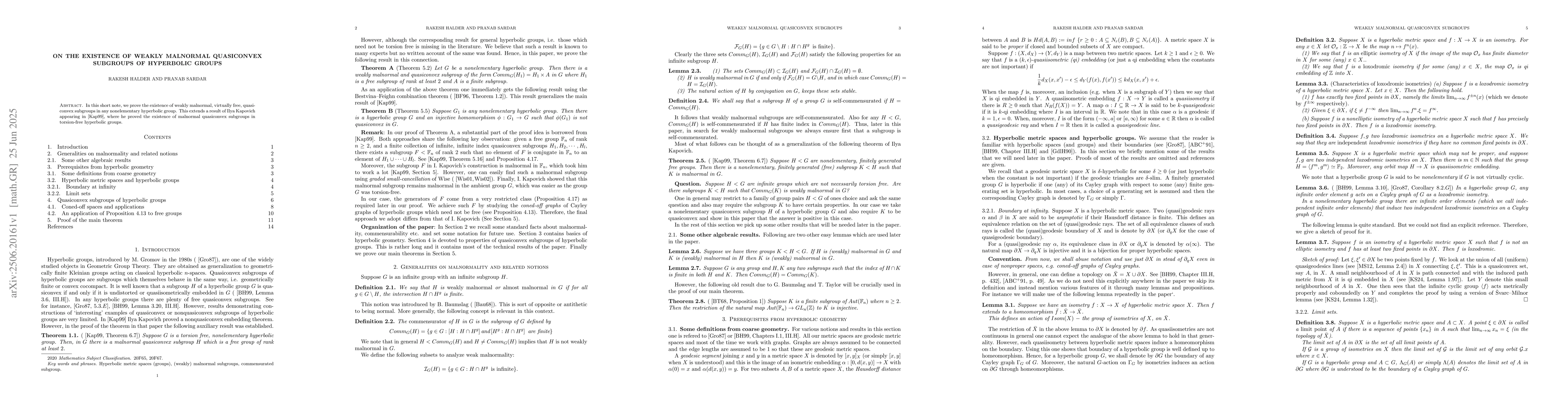 In this short note, we prove the existence of weakly malnormal, virtually free, quasiconvex subgroups in any nonelementary hyperbolic group. This extends a result of Ilya Kapovich, where he proved the existence of malnormal quasiconvex subgroups in torsion-free hyperbolic groups.