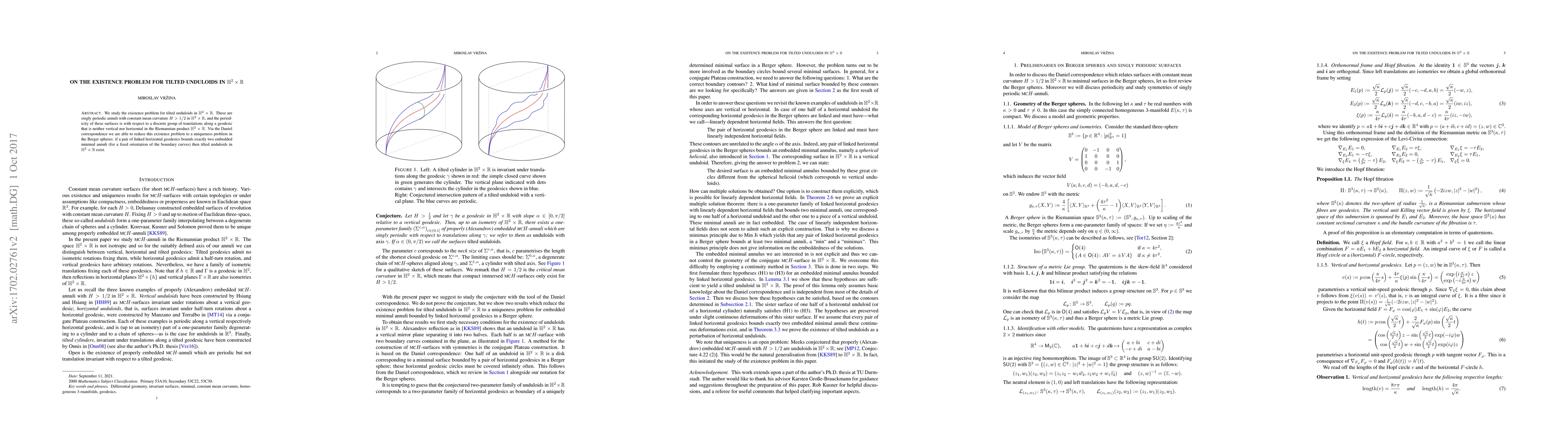 We study the existence problem for tilted unduloids in $\mathbb{H}^2\times\mathbb{R}$. These are singly periodic annuli with constant mean curvature $H>1/2$ in $\mathbb{H}^2\times\mathbb{R}$, and the periodicity of these surfaces is with respect to a discrete group of translations along a geodesic that is neither vertical nor horizontal in the Riemannian product $\mathbb{H}^2\times\mathbb{R}$. Via the Daniel correspondence we are able to reduce this existence problem to a uniqueness problem in the Berger spheres: if a pair of linked horizontal geodesics bounds exactly two embedded minimal annuli (for a fixed orientation of the boundary curves) then tilted unduloids in $\mathbb{H}^2\times\mathbb{R}$ exist.