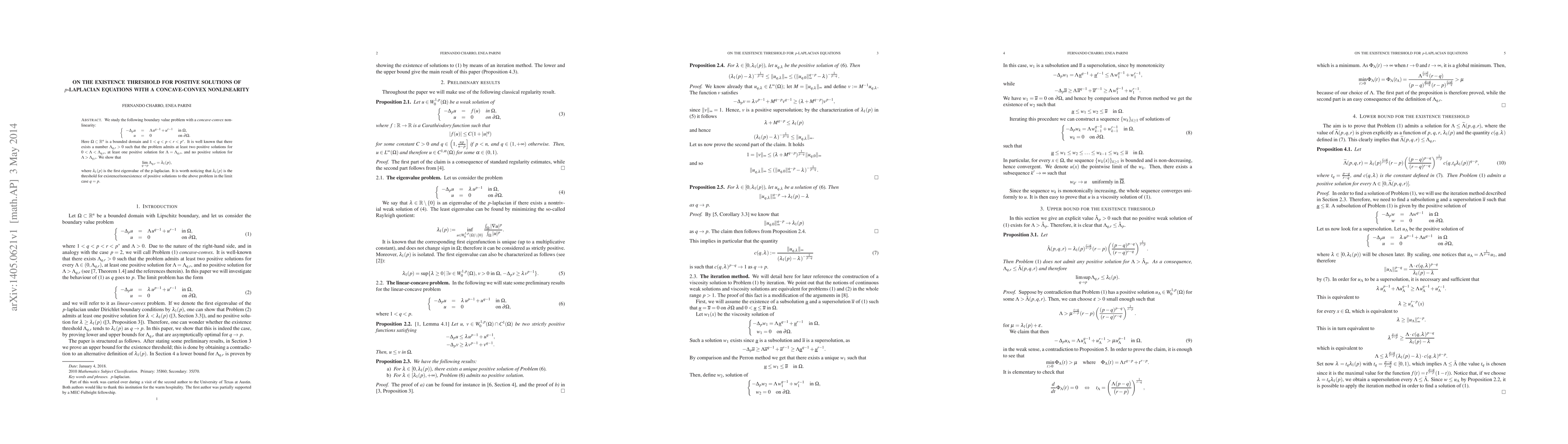 noticing that $\lambda_1(p)$ is the threshold for existence/nonexistence of