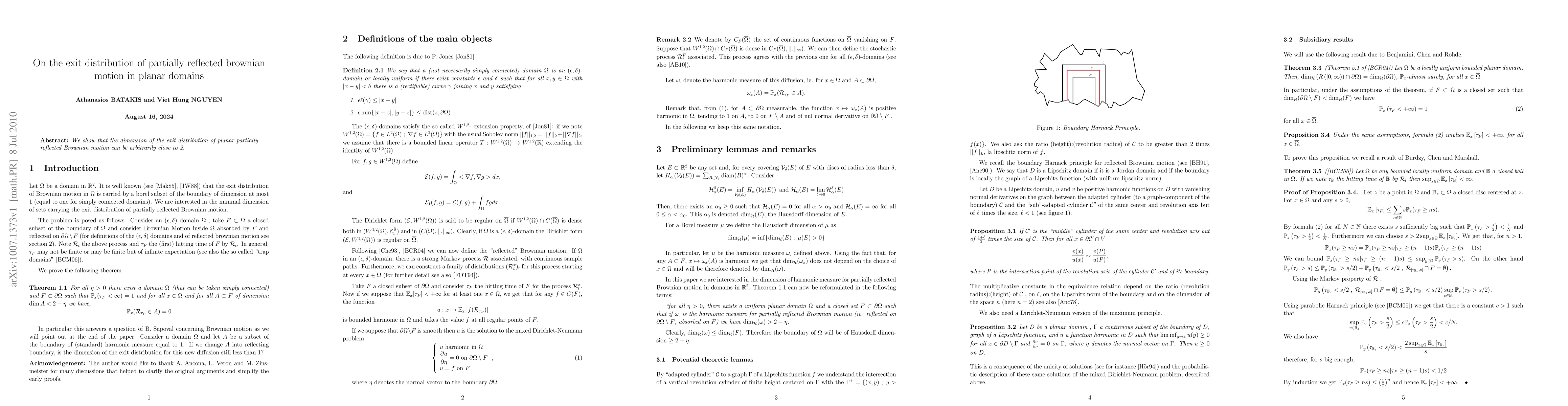 Two-line summary: This research investigates the exit distribution of planar partially reflected Brownian motion, demonstrating that its dimension can approach 2, closely resembling the two-dimensional Euclidean space. The findings highlight the nuanced behavior of such stochastic processes in confined planar domains.