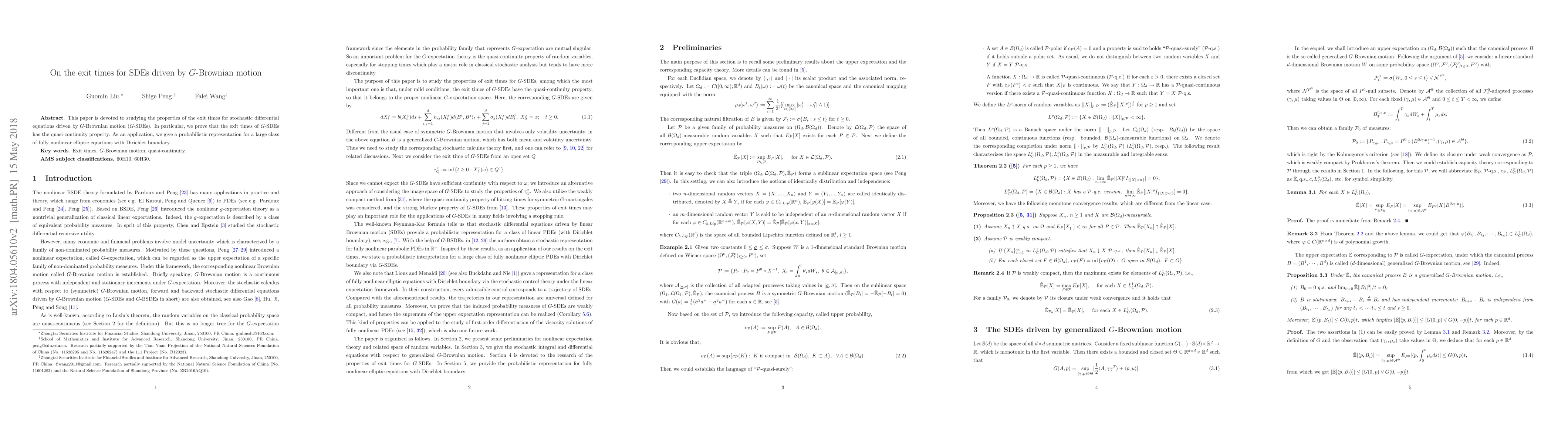 This paper investigates the exit times of stochastic differential equations driven by $G$-Brownian motion, demonstrating their quasi-continuity property. It also provides a probabilistic representation for a wide range of fully nonlinear elliptic equations with Dirichlet boundary conditions.