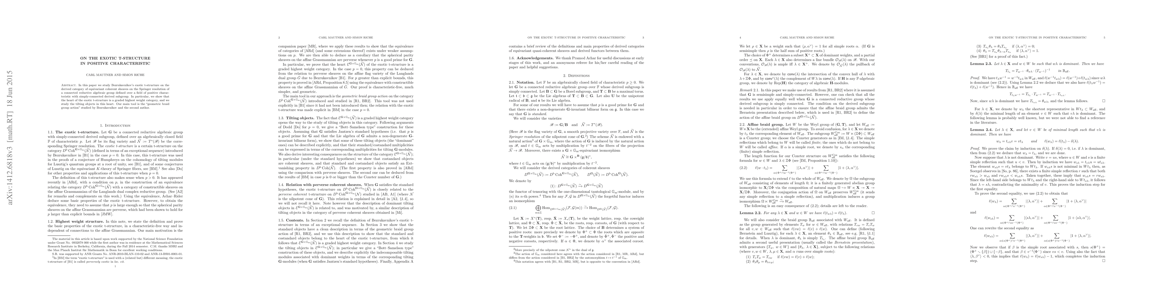This research explores Bezrukavnikov's exotic t-structure on the derived category of equivariant coherent sheaves over Springer resolutions of certain algebraic groups in positive characteristic. It demonstrates that the heart of this exotic t-structure forms a graded highest weight category, and examines tilting objects within it, utilizing a 'geometric braid group action' as a key tool.