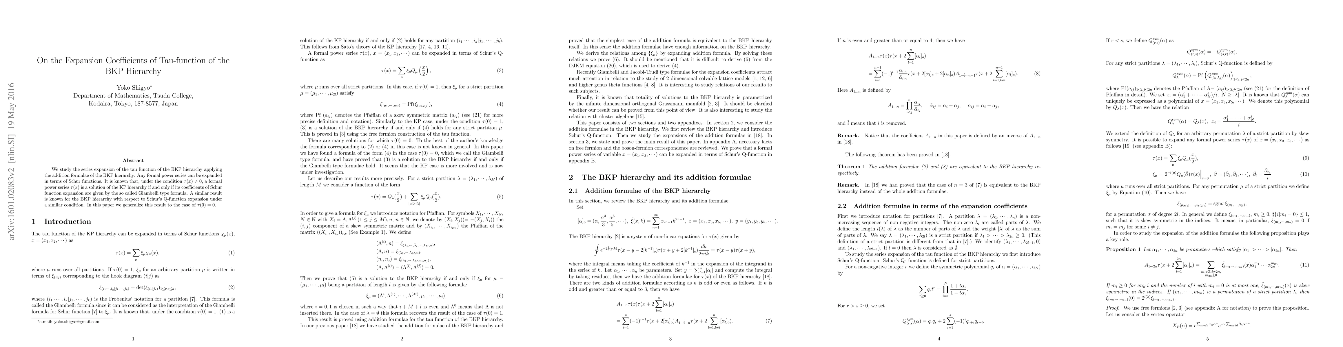 This paper investigates the expansion coefficients of the tau function in the BKP hierarchy, applying addition formulae to express any formal power series in terms of Schur functions. It generalizes the Giambelli type formula for coefficient determination to cases where $\tau(0)=0$.