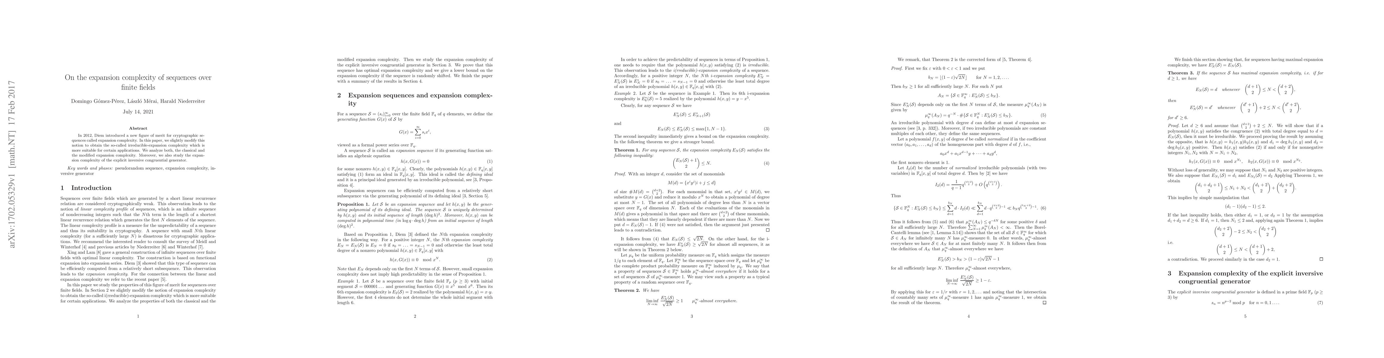 This paper refines the concept of expansion complexity introduced by Diem in 2012, introducing a new measure called irreducible-expansion complexity for cryptographic sequences. It analyzes both the original and modified complexity measures and examines the expansion complexity of the explicit inversive congruential generator.