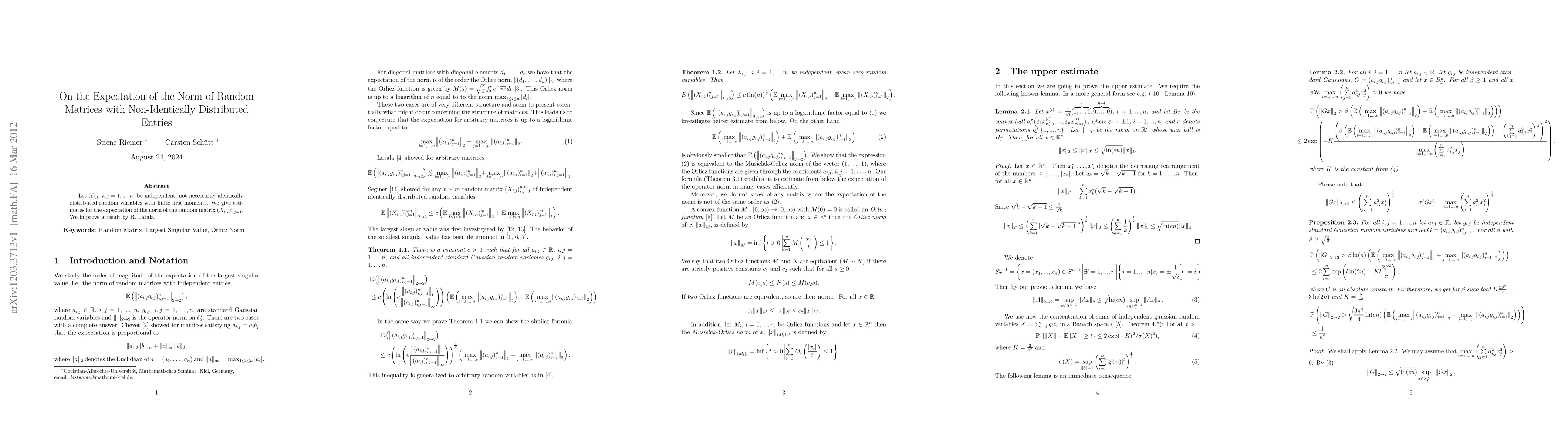 Summary: This paper provides estimates for the expected norm of random matrices where entries are independent but not identically distributed, contributing to the understanding of matrix norms in probabilistic settings.