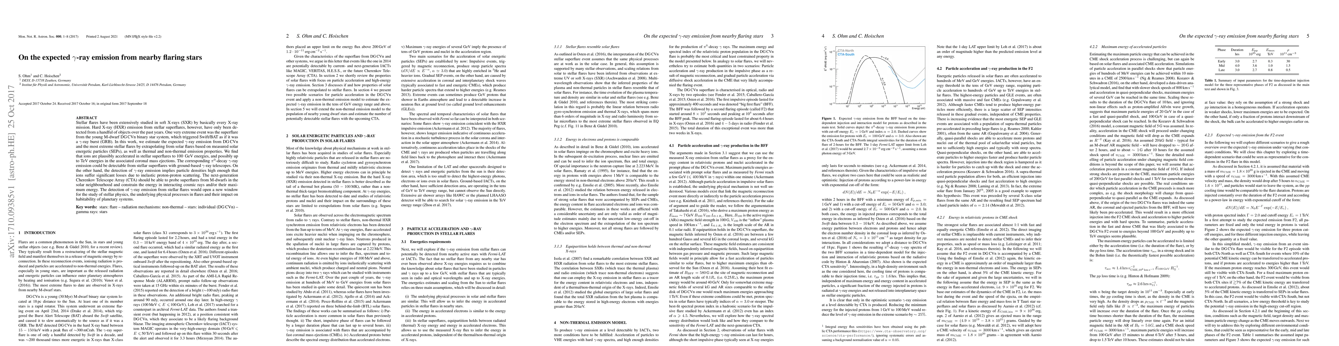 Stellar flares have been extensively studied in soft X-rays (SXR) by basically every X-ray mission. Hard X-ray (HXR) emission from stellar superflares, however, have only been detected from a handful of objects over the past years. One very extreme event was the superflare from the young M-dwarf DG CVn binary star system, which triggered Swift/BAT as if it was a $\gamma$-ray burst (GRB). In this work, we estimate the expected $\gamma$-ray emission from DG CVn and the most extreme stellar flares by extrapolating from solar flares based on measured solar energetic particles (SEPs), as well as thermal and non-thermal emission properties. We find that ions are plausibly accelerated in stellar superflares to 100 GeV energies, and possibly up to TeV energies in the associated coronal mass ejections. The corresponding $\pi^0$-decay $\gamma$-ray emission could be detectable from stellar superflares with ground-based $\gamma$-ray telescopes. On the other hand, the detection of $\gamma$-ray emission implies particle densities high enough that ions suffer significant losses due to inelastic proton-proton scattering. The next-generation Cherenkov Telescope Array (CTA) should be able to probe superflares from M-dwarfs in the solar neighbourhood and constrain the energy in interacting cosmic rays and/or their maximum energy. The detection of $\gamma$-ray emission from stellar flares would open a new window for the study of stellar physics, the underlying physical processes in flares and their impact on habitability of planetary systems.