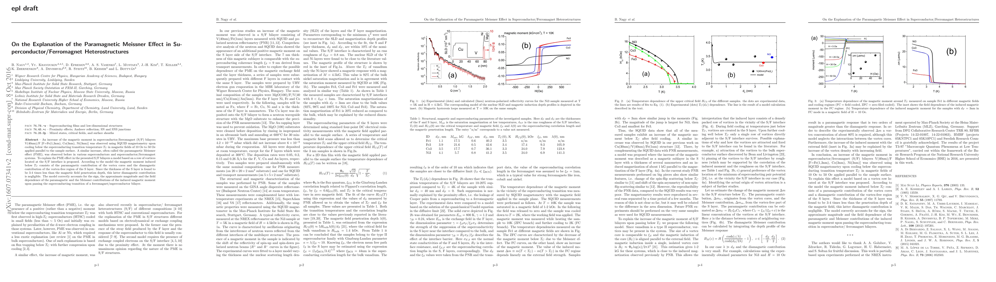 This paper investigates the paramagnetic Meissner effect (PME) in superconductor/ferromagnet bilayers, observing an increase in magnetic moment upon cooling below Tc. A proposed model attributes the PME to the paramagnetic contribution of vortex cores at the interface, while the diamagnetic contribution from the vortex-free region of the S layer is negligible due to its thinness.
