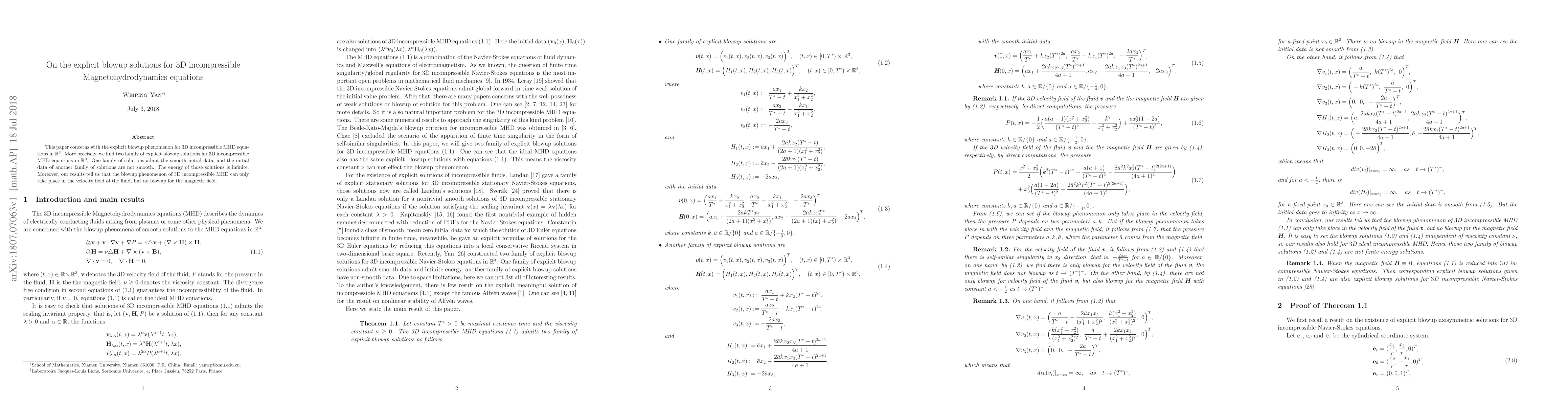 This paper identifies explicit blowup solutions for 3D incompressible Magnetohydrodynamics (MHD) equations, revealing two families: one with smooth initial data and another with non-smooth initial data, both exhibiting infinite energy, with blowup occurring only in the velocity field.