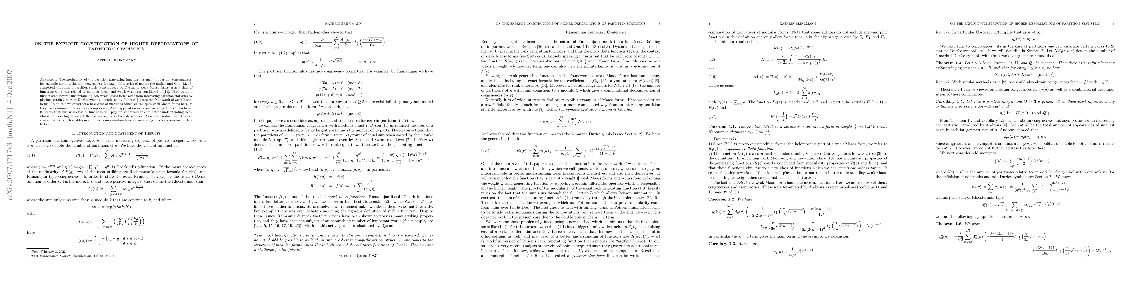 The modularity of the partition generating function has many important consequences, for example asymptotics and congruences for $p(n)$. In a series of papers the author and Ono \cite{BO1,BO2} connected the rank, a partition statistic introduced by Dyson, to weak Maass forms, a new class of functions which are related to modular forms and which were first considered in \cite{BF}. Here we do a further step towards understanding how weak Maass forms arise from interesting partition statistics by placing certain 2-marked Durfee symbols introduced by Andrews \cite{An1} into the framework of weak Maass forms. To do this we construct a new class of functions which we call quasiweak Maass forms because they have quasimodular forms as components. As an application we prove two conjectures of Andrews. It seems that this new class of functions will play an important role in better understanding weak Maass forms of higher weight themselves, and also their derivatives. As a side product we introduce a new method which enables us to prove transformation laws for generating functions over incomplete lattices.