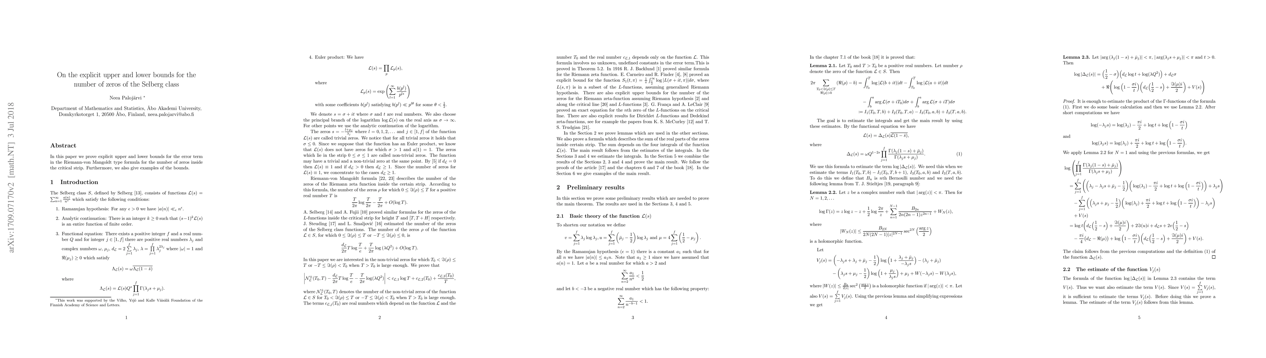 This paper establishes explicit upper and lower bounds for the error term in the Riemann-von Mangoldt formula concerning the zeros of functions within the Selberg class, alongside illustrative examples of these bounds.