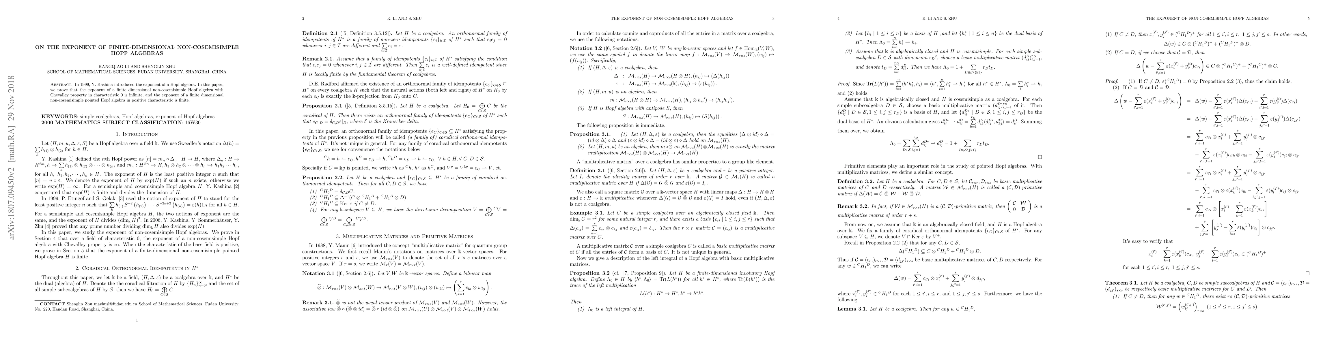 This paper proves that the exponent of a finite-dimensional non-cosemisimple Hopf algebra with Chevalley property in characteristic 0 is infinite, while the exponent of a finite-dimensional non-cosemisimple pointed Hopf algebra in positive characteristic is finite.