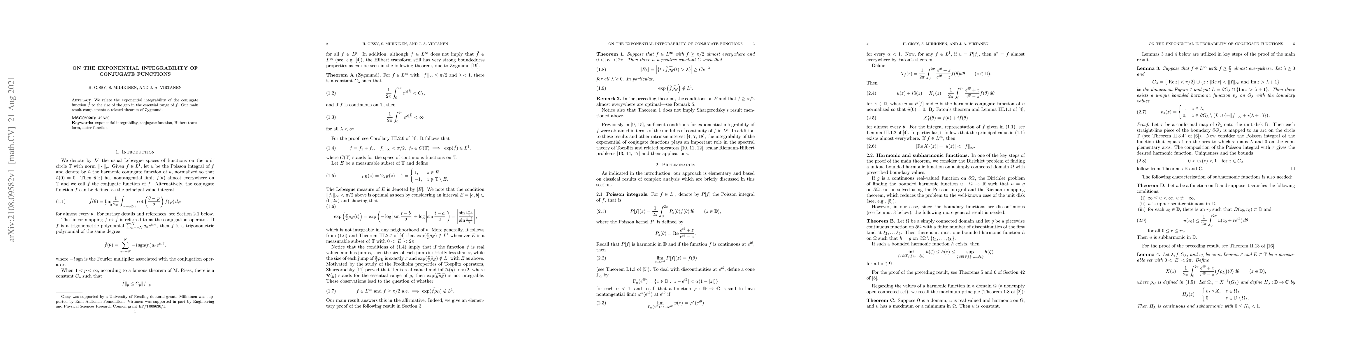 We relate the exponential integrability of the conjugate function $\tilde{f}$ to the size of the gap in the essential range of $f$. Our main result complements a related theorem of Zygmund.