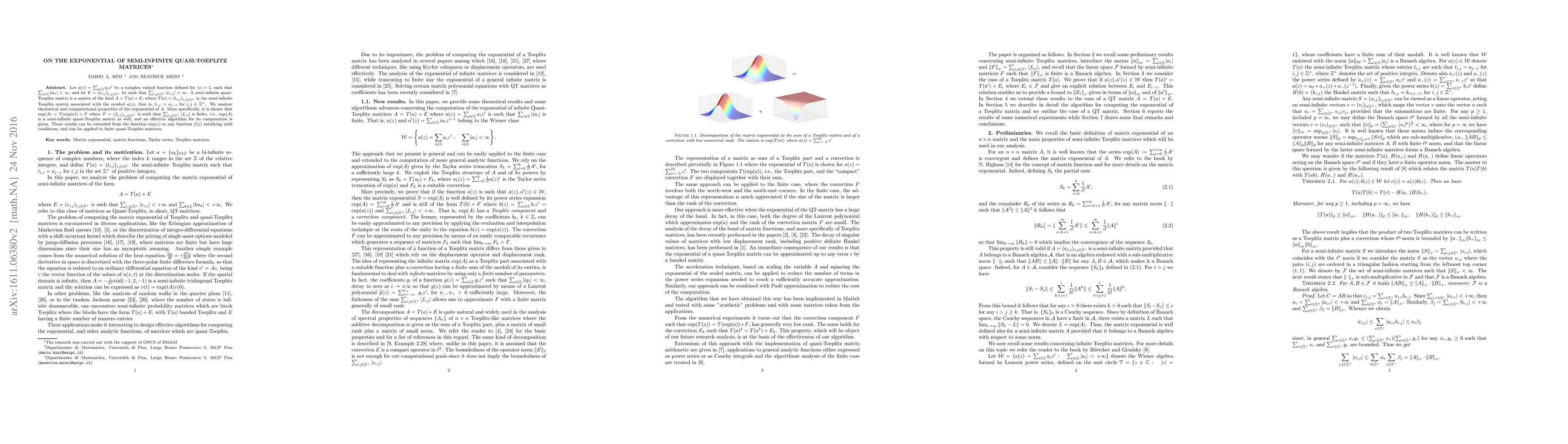 The research paper analyzes the exponential of semi-infinite quasi-Toeplitz matrices, showing that it can be expressed as a semi-infinite quasi-Toeplitz matrix with an additional finite correction term, and provides an effective algorithm for its computation.