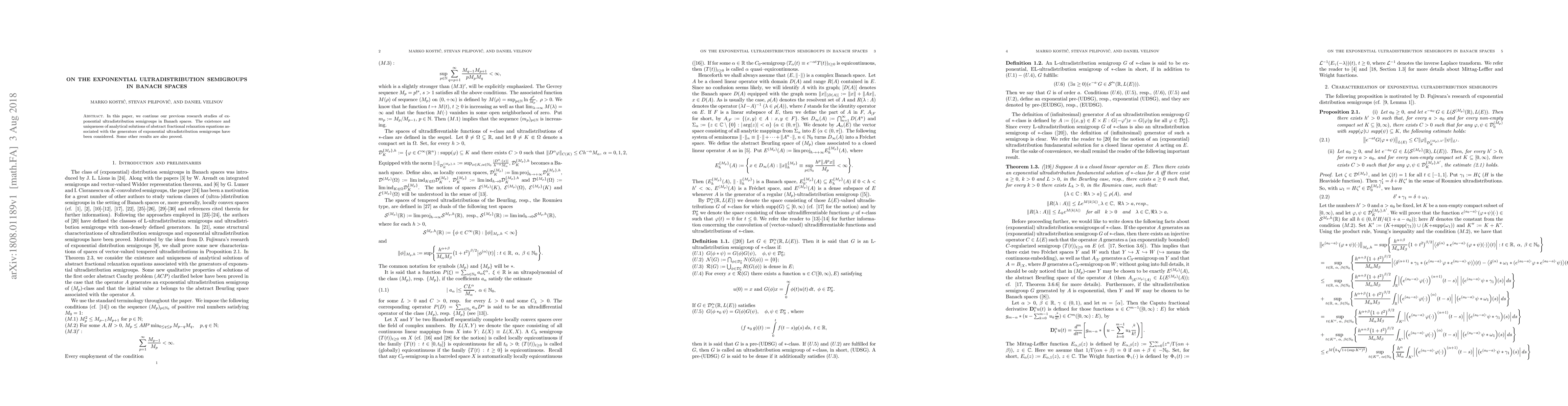 This paper investigates exponential ultradistribution semigroups in Banach spaces, focusing on the existence and uniqueness of analytical solutions for abstract fractional relaxation equations linked to their generators. Additional results are also presented.