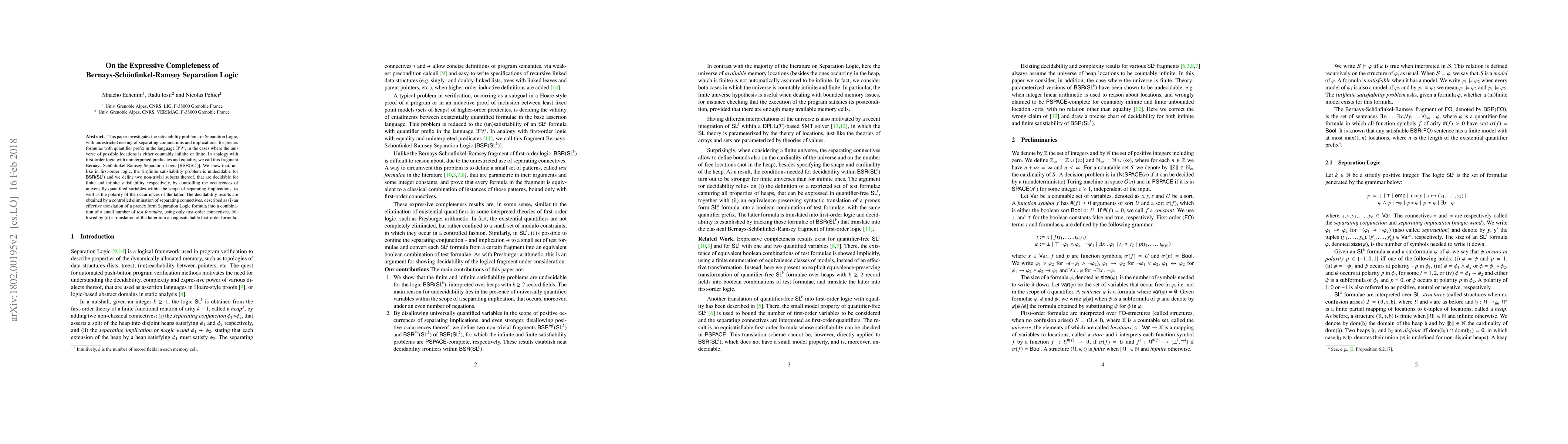 This paper explores the satisfiability problem for a logic called Bernays-Sch"onfinkel-Ramsey Separation Logic, finding that it is undecidable for infinite cases but decidable for finite ones with specific restrictions.