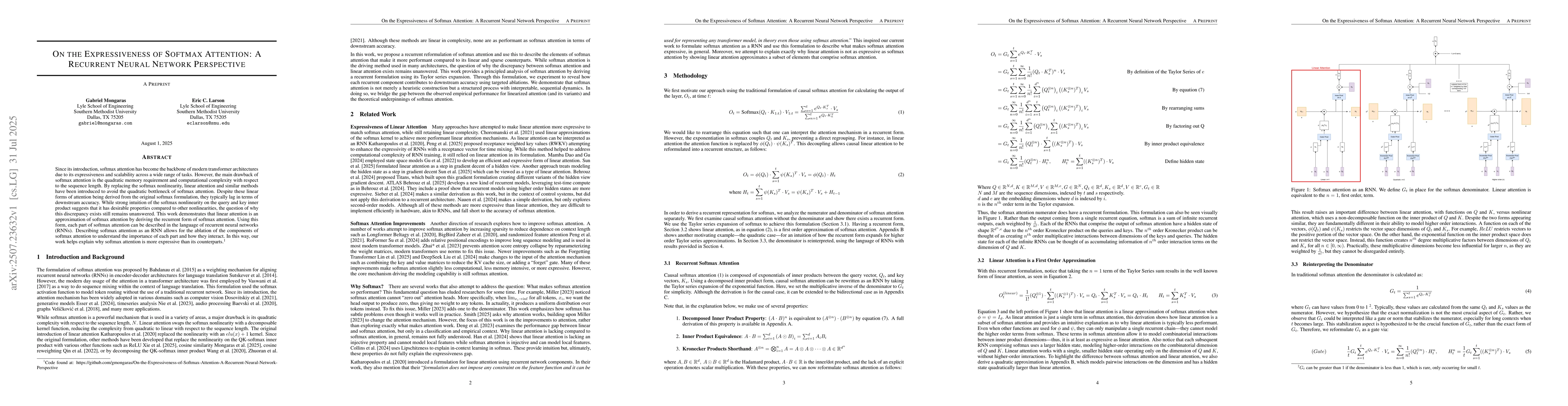 Since its introduction, softmax attention has become the backbone of modern transformer architectures due to its expressiveness and scalability across a wide range of tasks. However, the main drawback of softmax attention is the quadratic memory requirement and computational complexity with respect to the sequence length. By replacing the softmax nonlinearity, linear attention and similar methods have been introduced to avoid the quadratic bottleneck of softmax attention. Despite these linear forms of attention being derived from the original softmax formulation, they typically lag in terms of downstream accuracy. While strong intuition of the softmax nonlinearity on the query and key inner product suggests that it has desirable properties compared to other nonlinearities, the question of why this discrepancy exists still remains unanswered. This work demonstrates that linear attention is an approximation of softmax attention by deriving the recurrent form of softmax attention. Using this form, each part of softmax attention can be described in the language of recurrent neural networks (RNNs). Describing softmax attention as an RNN allows for the ablation of the components of softmax attention to understand the importance of each part and how they interact. In this way, our work helps explain why softmax attention is more expressive than its counterparts.