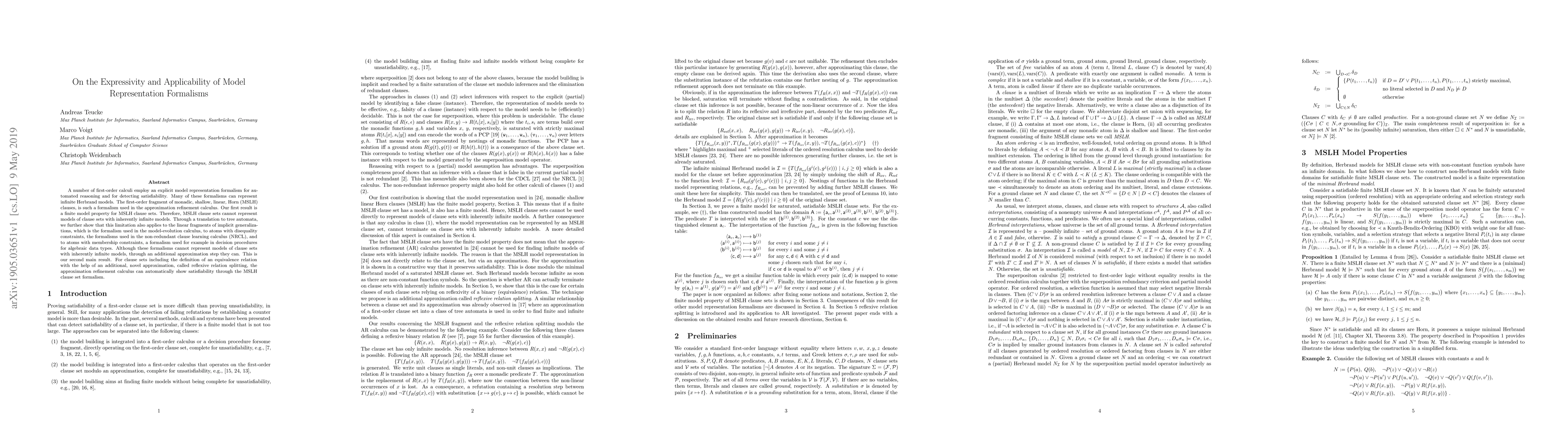 A number of first-order calculi employ an explicit model representation formalism for automated reasoning and for detecting satisfiability. Many of these formalisms can represent infinite Herbrand models. The first-order fragment of monadic, shallow, linear, Horn (MSLH) clauses, is such a formalism used in the approximation refinement calculus. Our first result is a finite model property for MSLH clause sets. Therefore, MSLH clause sets cannot represent models of clause sets with inherently infinite models. Through a translation to tree automata, we further show that this limitation also applies to the linear fragments of implicit generalizations, which is the formalism used in the model-evolution calculus, to atoms with disequality constraints, the formalisms used in the non-redundant clause learning calculus (NRCL), and to atoms with membership constraints, a formalism used for example in decision procedures for algebraic data types. Although these formalisms cannot represent models of clause sets with inherently infinite models, through an additional approximation step they can. This is our second main result. For clause sets including the definition of an equivalence relation with the help of an additional, novel approximation, called reflexive relation splitting, the approximation refinement calculus can automatically show satisfiability through the MSLH clause set formalism.