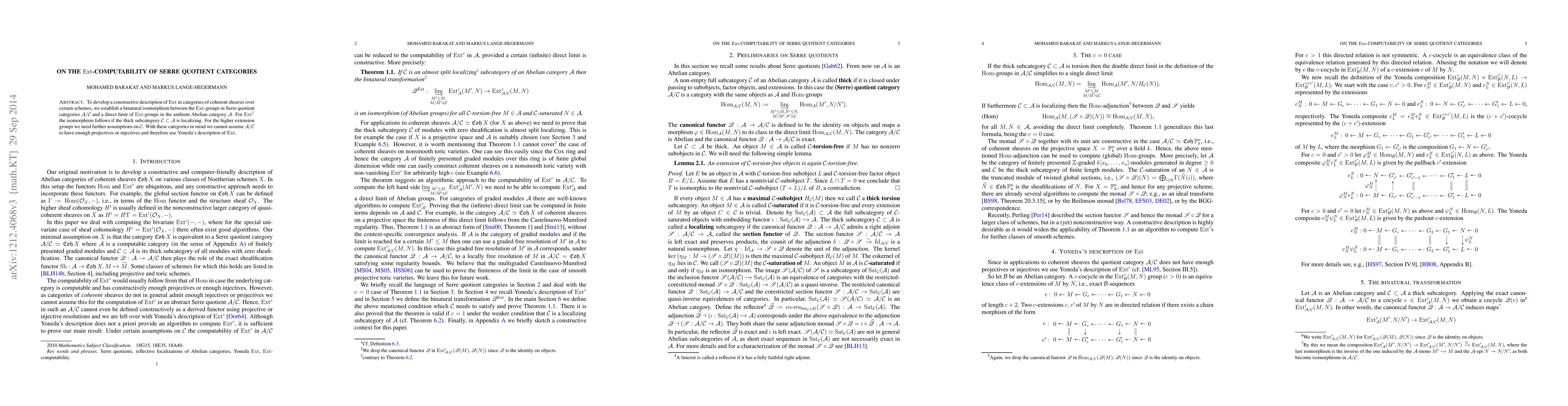 To develop a constructive description of $\mathrm{Ext}$ in categories of coherent sheaves over certain schemes, we establish a binatural isomorphism between the $\mathrm{Ext}$-groups in Serre quotient categories $\mathcal{A}/\mathcal{C}$ and a direct limit of $\mathrm{Ext}$-groups in the ambient Abelian category $\mathcal{A}$. For $\mathrm{Ext}^1$ the isomorphism follows if the thick subcategory $\mathcal{C} \subset \mathcal{A}$ is localizing. For the higher extension groups we need further assumptions on $\mathcal{C}$. With these categories in mind we cannot assume $\mathcal{A}/\mathcal{C}$ to have enough projectives or injectives and therefore use Yoneda's description of $\mathrm{Ext}$.