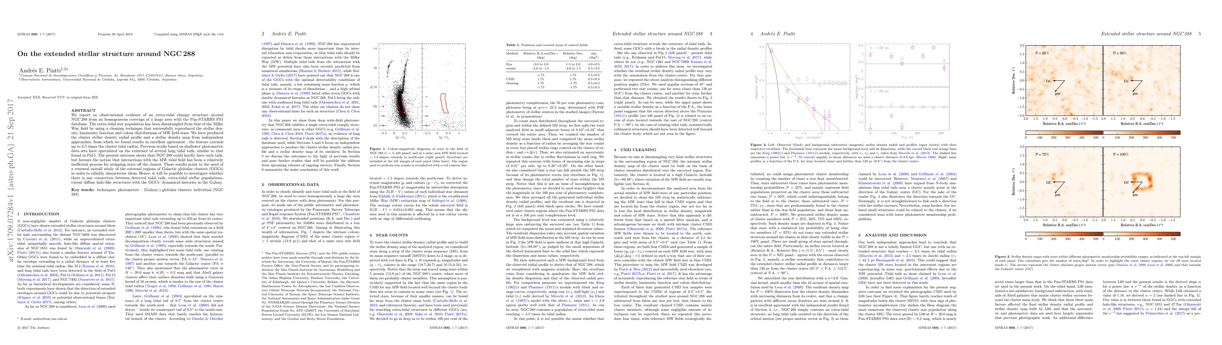 This paper reports on the discovery of an extended, clumpy structure around NGC 288 using Pan-STARRS data, revealing an extra-tidal star population that extends up to 3.5 times the cluster's tidal radius. Contrary to previous speculations, the study suggests that NGC 288 lacks long tidal tails, indicating inefficient stripping by the Milky Way's tidal field.