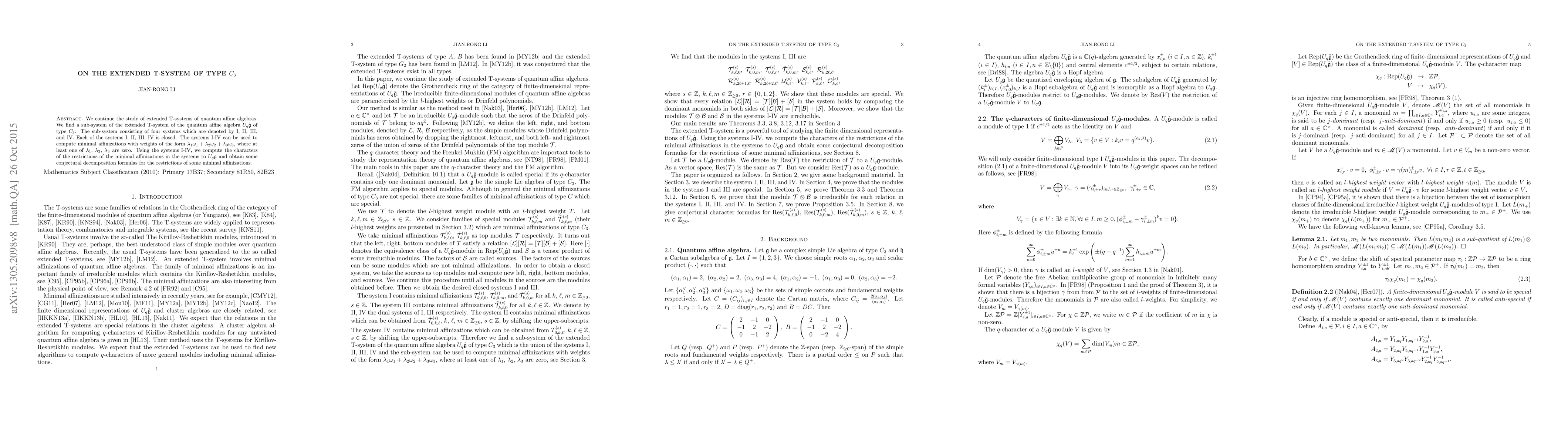 We continue the study of extended T-systems of quantum affine algebras. We find a sub-system of the extended T-system of the quantum affine algebra $U_q \hat{\mathfrak{g}}$ of type $C_3$. The sub-system consisting of four systems which are denoted by I, II, III, and IV. Each of the systems I, II, III, IV is closed. The systems I-IV can be used to compute minimal affinizations with weights of the form $\lambda_1 \omega_1 + \lambda_2 \omega_2 + \lambda_3 \omega_3$, where at least one of $\lambda_1$, $\lambda_2$, $\lambda_3$ are zero. Using the systems I-IV, we compute the characters of the restrictions of the minimal affinizations in the systems to $ U_q \mathfrak{g} $ and obtain some conjectural decomposition formulas for the restrictions of some minimal affinizations.
