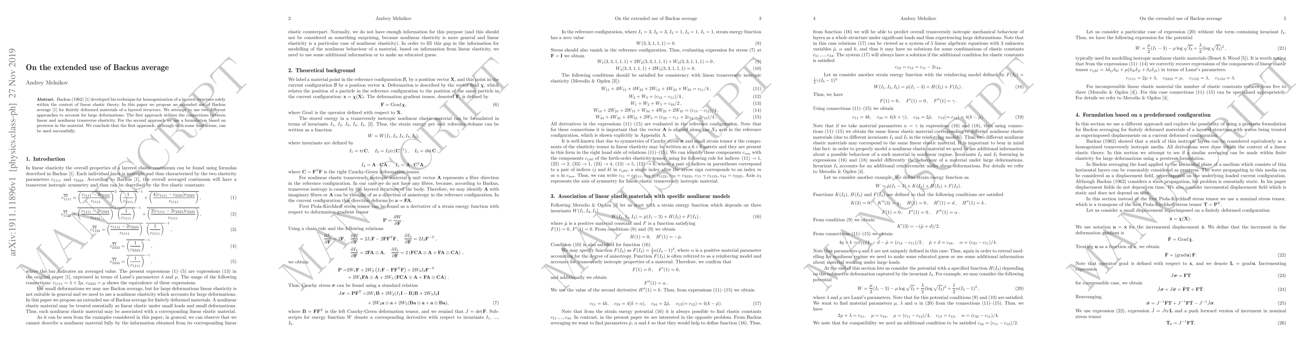 Researchers extended Backus average to finitely deformed materials, finding a successful approach using connections between linear and nonlinear transverse elasticity.