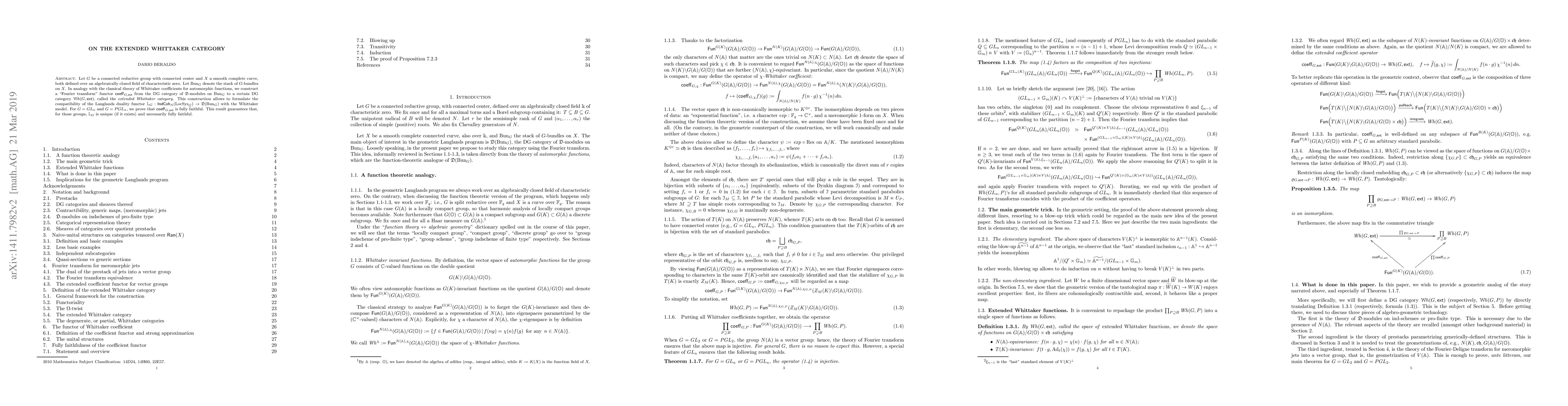 Let $G$ be a connected reductive group, with connected center, and $X$ a smooth complete curve, both defined over an algebraically closed field of characteristic zero. Let $\operatorname{Bun}_G$ denote the stack of $G$-bundles on $X$. In analogy with the classical theory of Whittaker coefficients for automorphic functions, we construct a "Fourier transform" functor, called $\mathsf{coeff}_{G,\mathsf{ext}}$, from the DG category of $\mathfrak{D}$-modules on $\operatorname{Bun}_G$ to a certain DG category $\mathcal{W}h(G,\mathsf{ext})$, called the \emph{extended Whittaker category}. Combined with work in progress by other mathematicians and the author, this construction allows to formulate the compatibility of the Langlands duality functor $\mathbb{L}_G: \operatorname{IndCoh}_{\mathcal N}(\operatorname{LocSys}_{\check{G}}) \to \mathfrak{D}(\operatorname{Bun}_G)$ with the Whittaker model. For $G=GL_n$ and $G=PGL_n$, we prove that $\mathsf{coeff}_{G,\mathsf{ext}}$ is fully faithful. This result guarantees that, for those groups, $\mathbb{L}_G$ is unique (if it exists) and necessarily fully faithful.