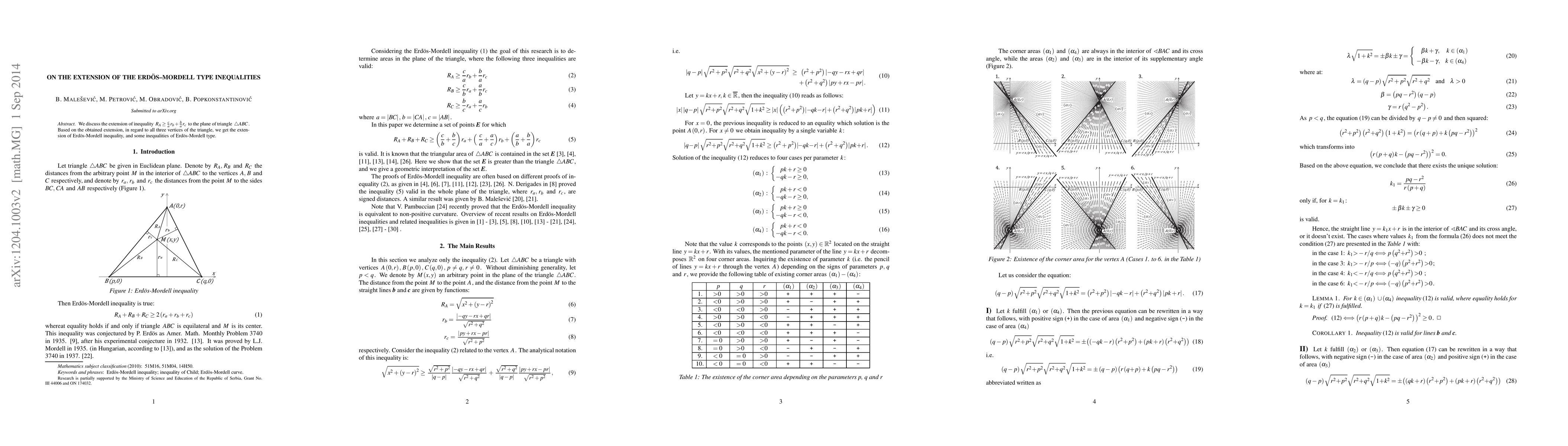 Researchers extended Erdos-Mordell type inequalities to the plane of a triangle ABC, obtaining new bounds for distances between vertices and implications for triangle geometry.